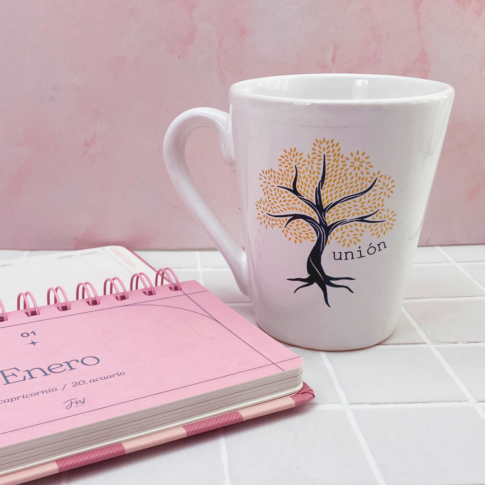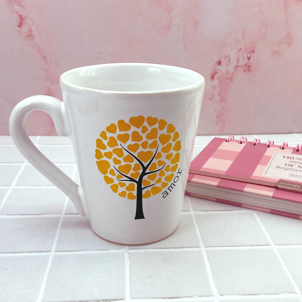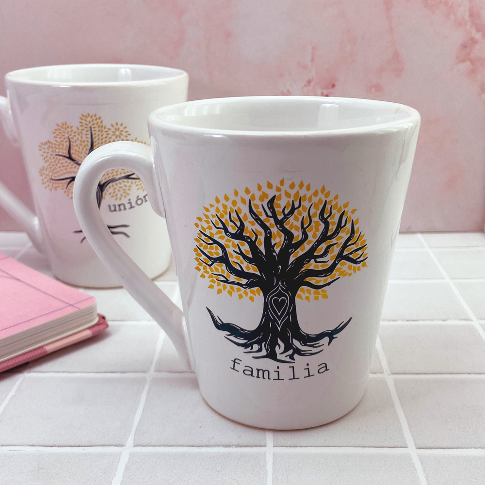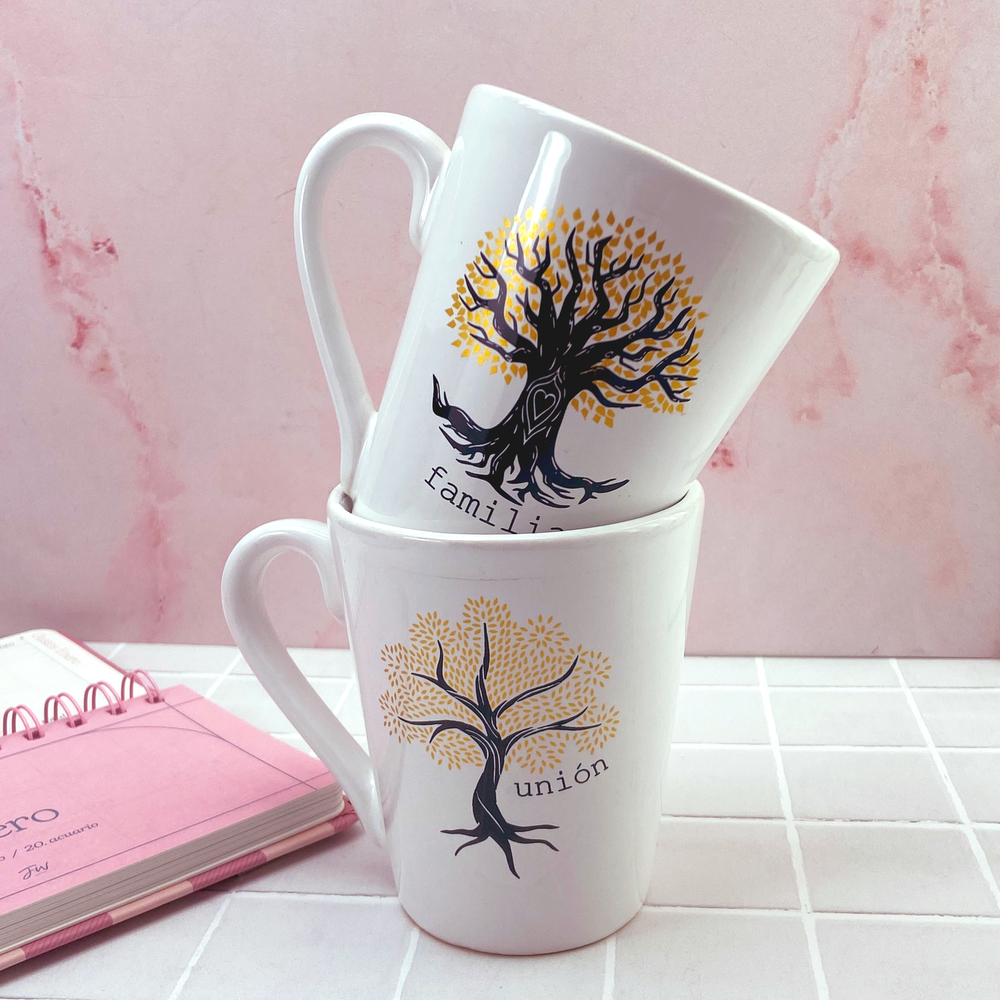 Taza de cerámica estampada con diseño de árbol de la vida