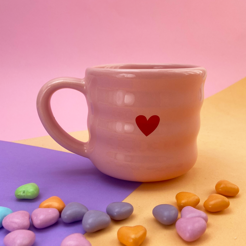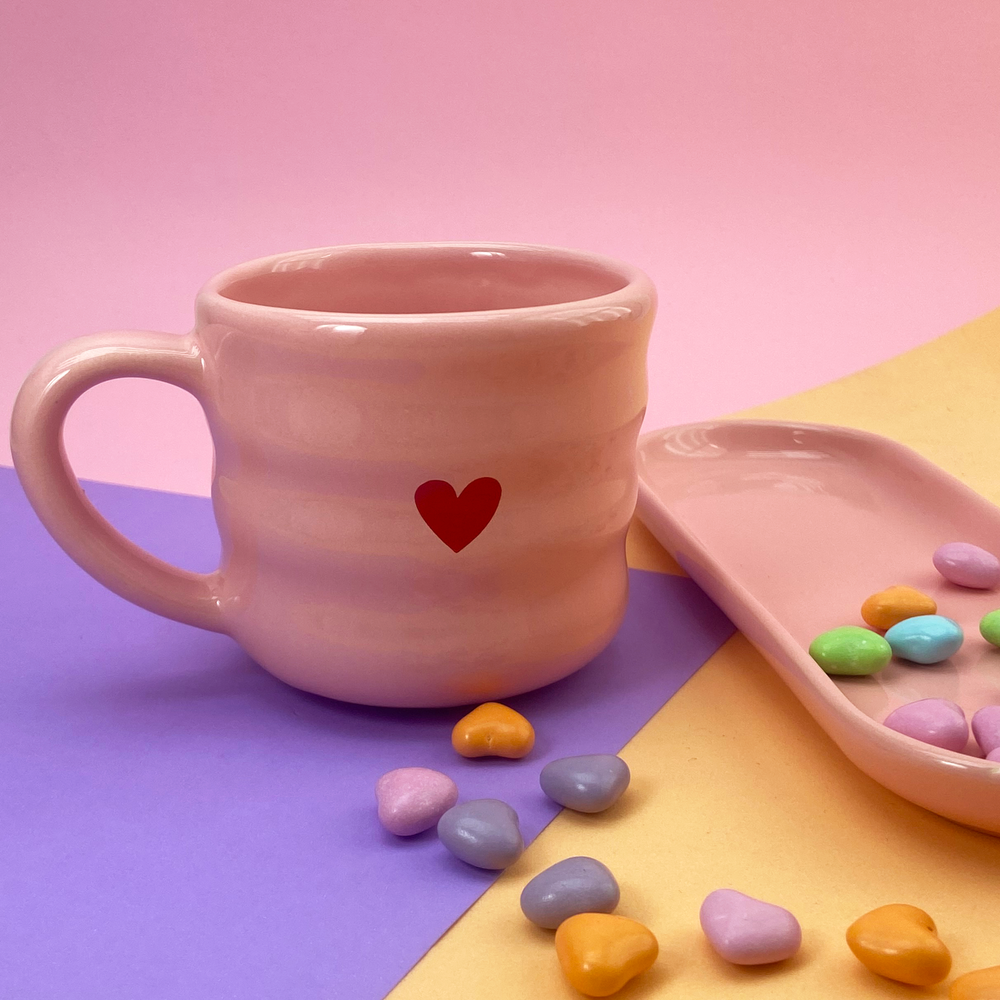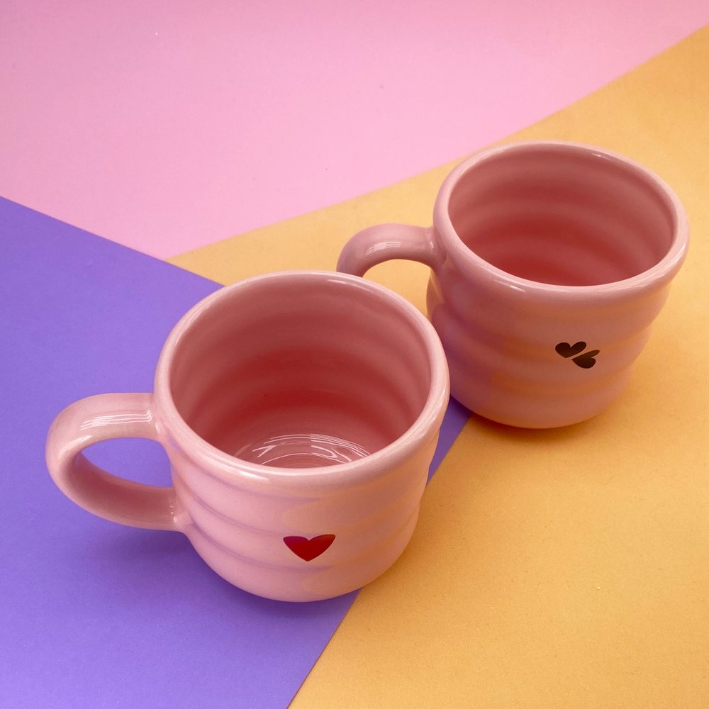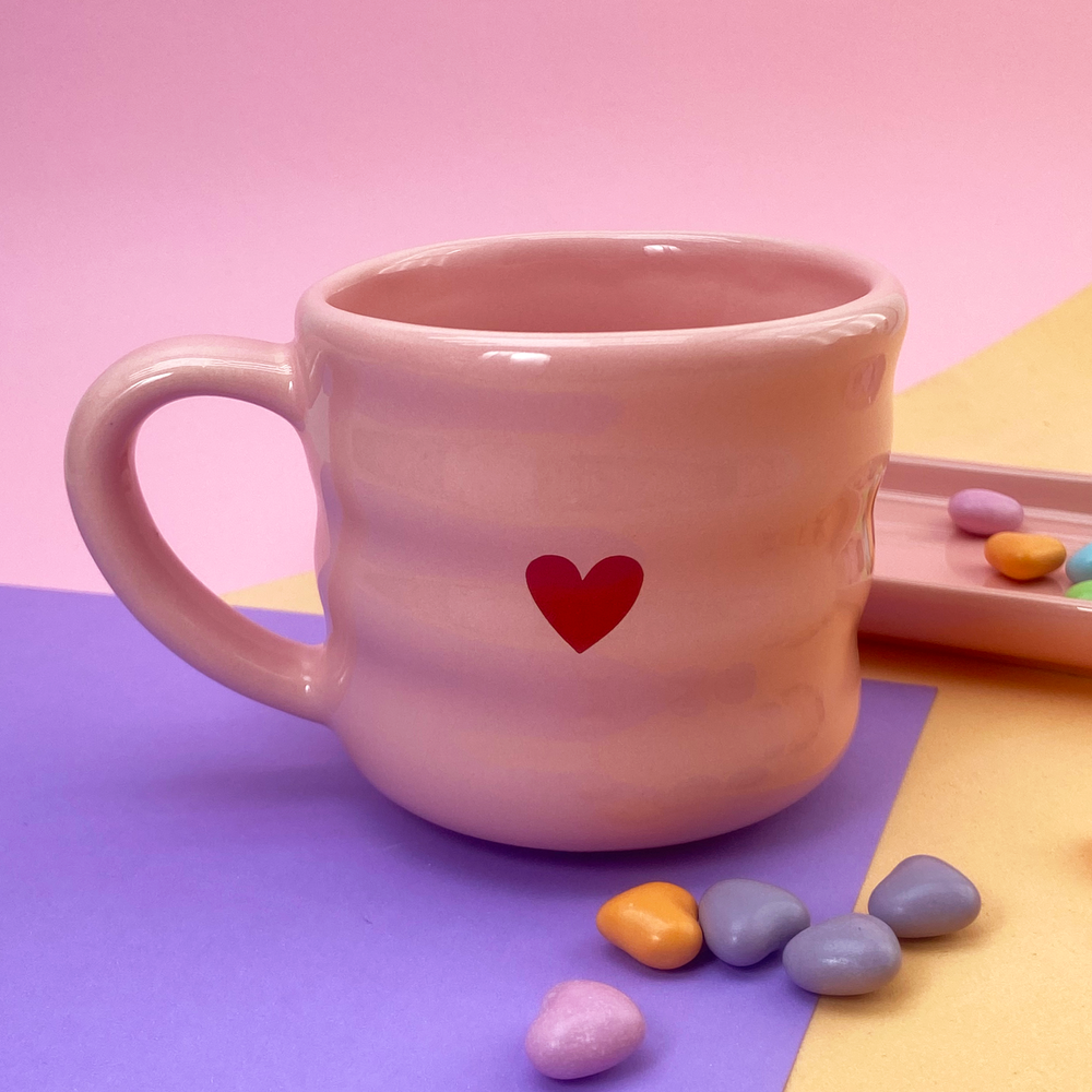 Taza de cerámica diseño de franjas con estampado de corazón