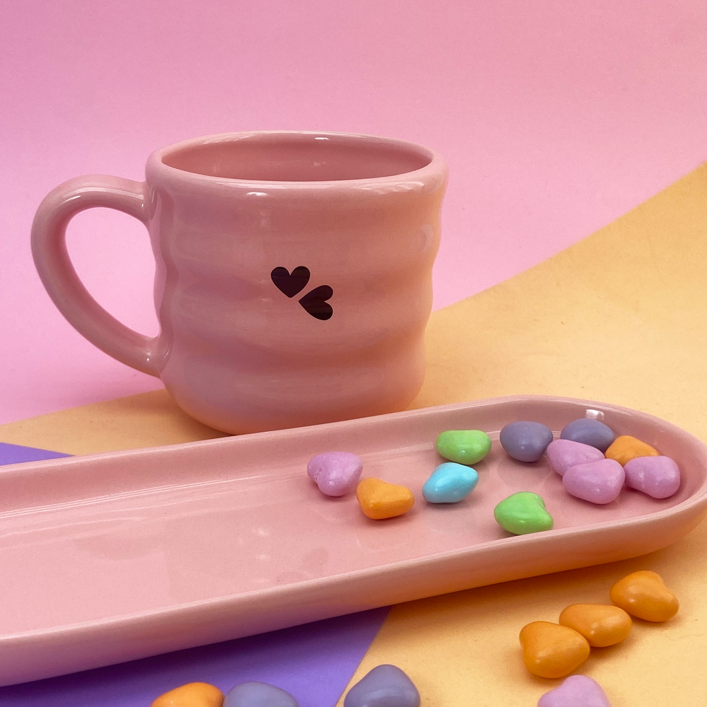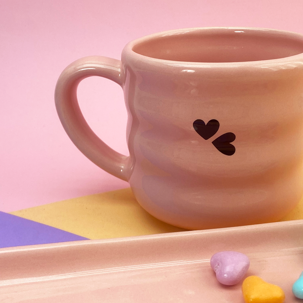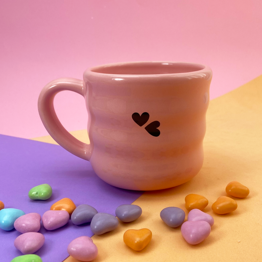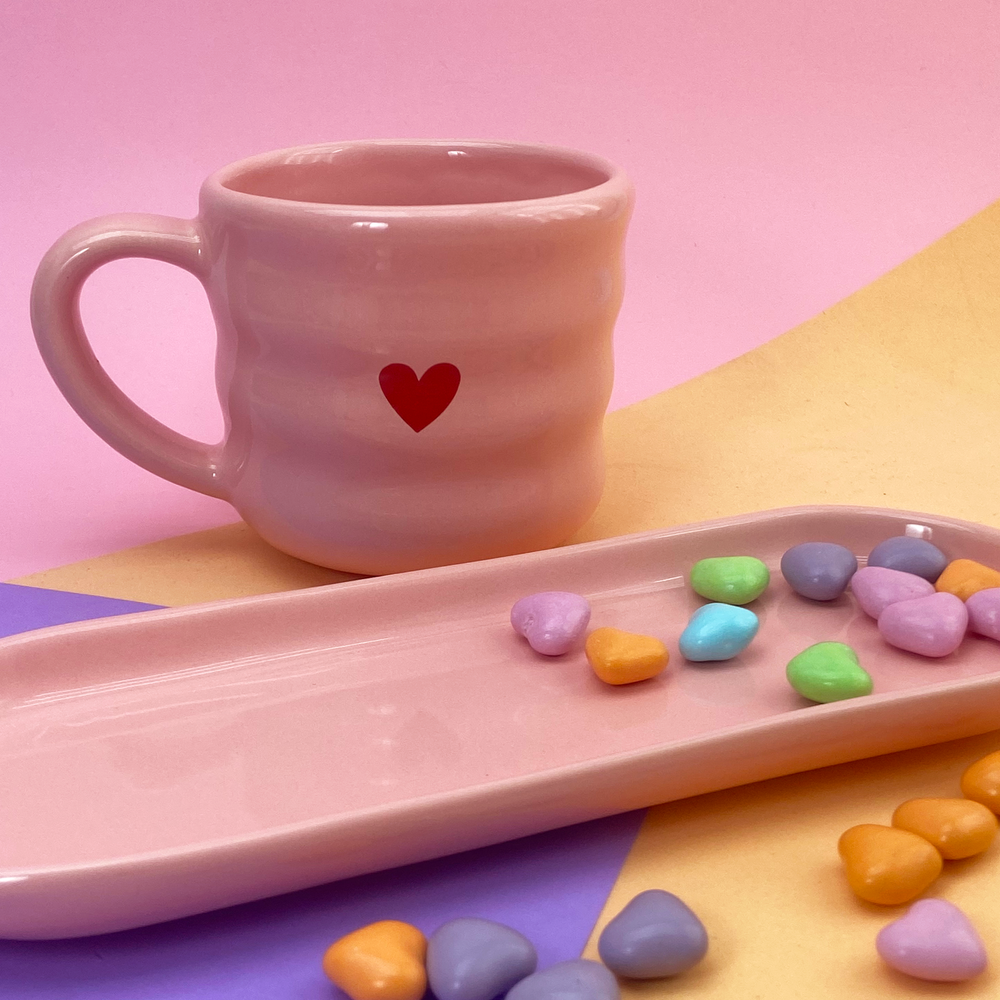 Taza de cerámica diseño de franjas con estampado de corazón