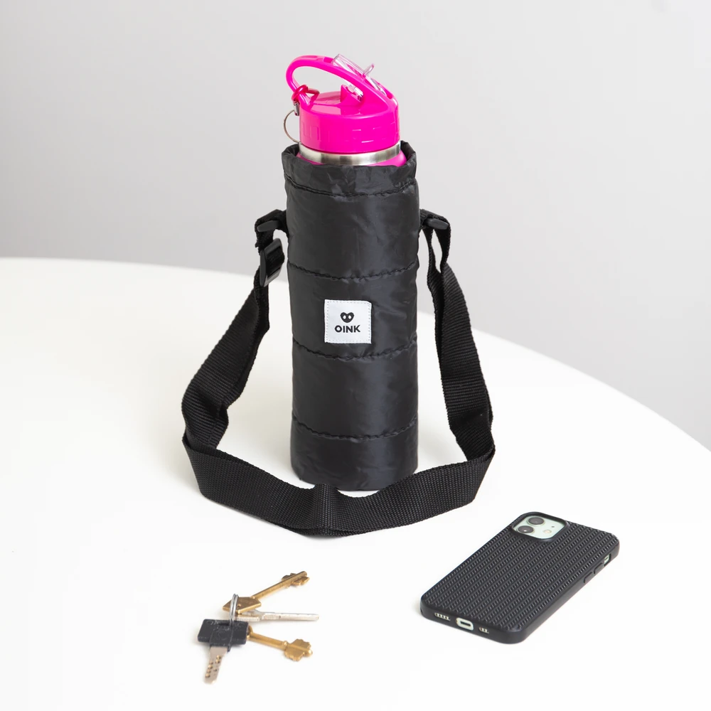 Portabotellas con correa ideal para llevar siempre con vos tu botellita de agua. Super espacioso para todo tipo de botella hasta 1L aprox. Con cordón regulable para ajustar a tope tanto para botellas altas o bajas! Medidas: 3x15,5 aprox