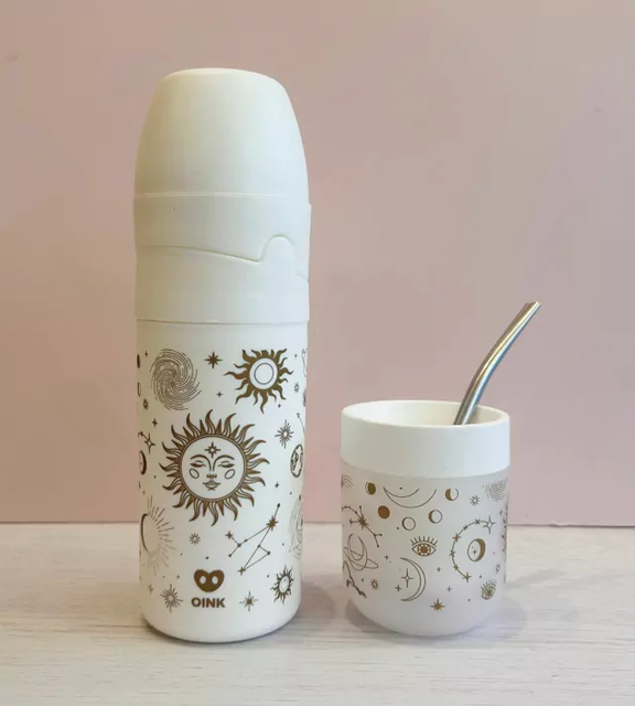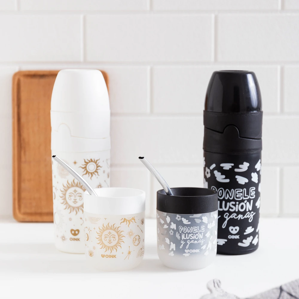 Set de yerbera y azucarera + Mate con bombilla ¡El kit matero ideal para llevar con vos a todos lados! El set tiene tapita deslizante. Unilos con un click ya que son encastrables, y llevalo tipo termito a todos lados ¡Es muy comodo de transportar! Medida: 24 x 7 cm de diámetro