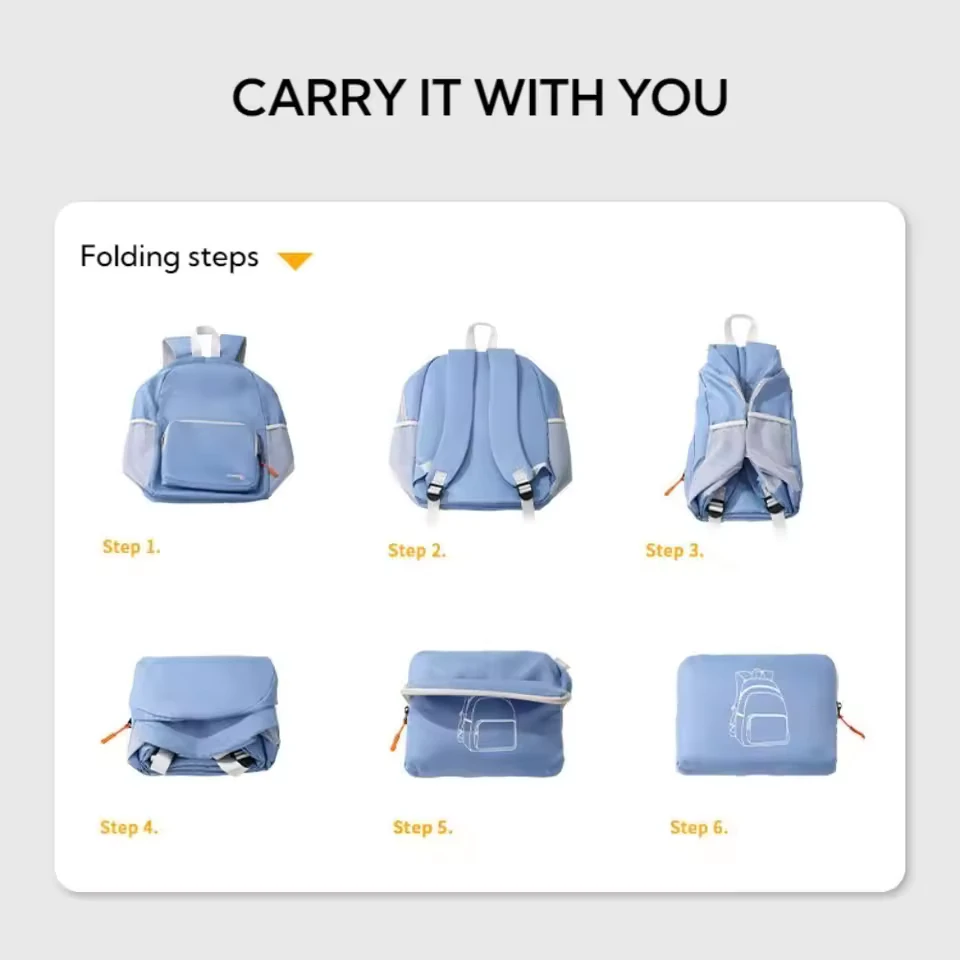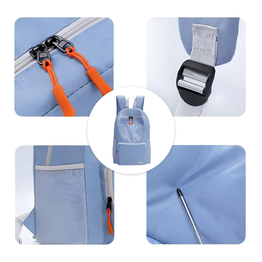 Ahorrá espacio en la valija y usala para traer regalitos o para las excursiones de tu viaje! Mochila plegable impermeable! Convertila a un tamaño de 17 cm x 21 cm! Tiene bolsillos de red para colocar botellas o lo que quieras!. Su cinta reflectiva del costado es ideal para cuando estamos en la bici, corriendo o viajando!. Medida de la mochila desplegada: Largo: 28cm x Ancho: 13cm x Alto: 39cm Aprox.