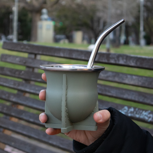 Térmico con doble pared, mantiene el calor del agua y la yerba por más tiempo