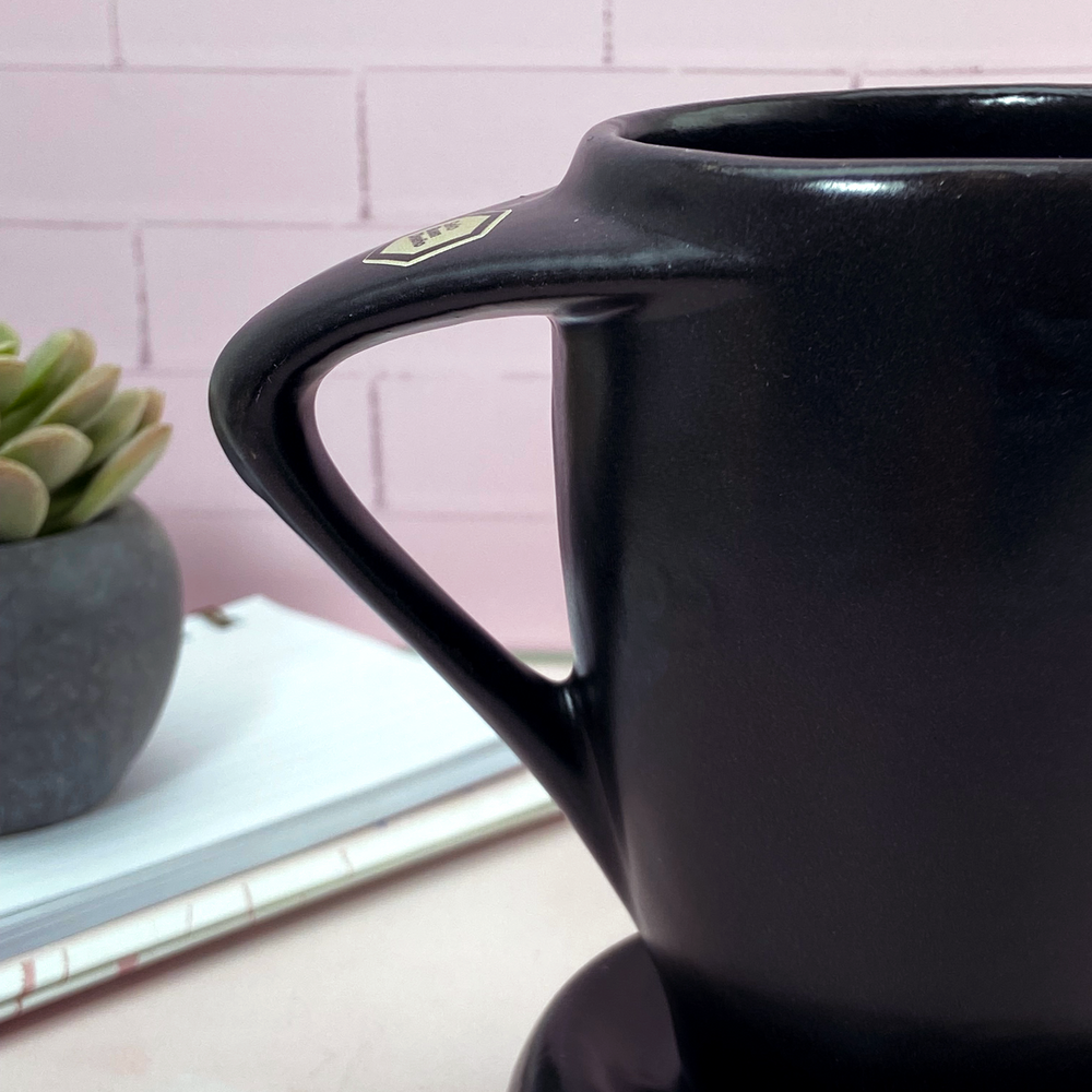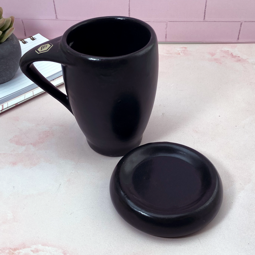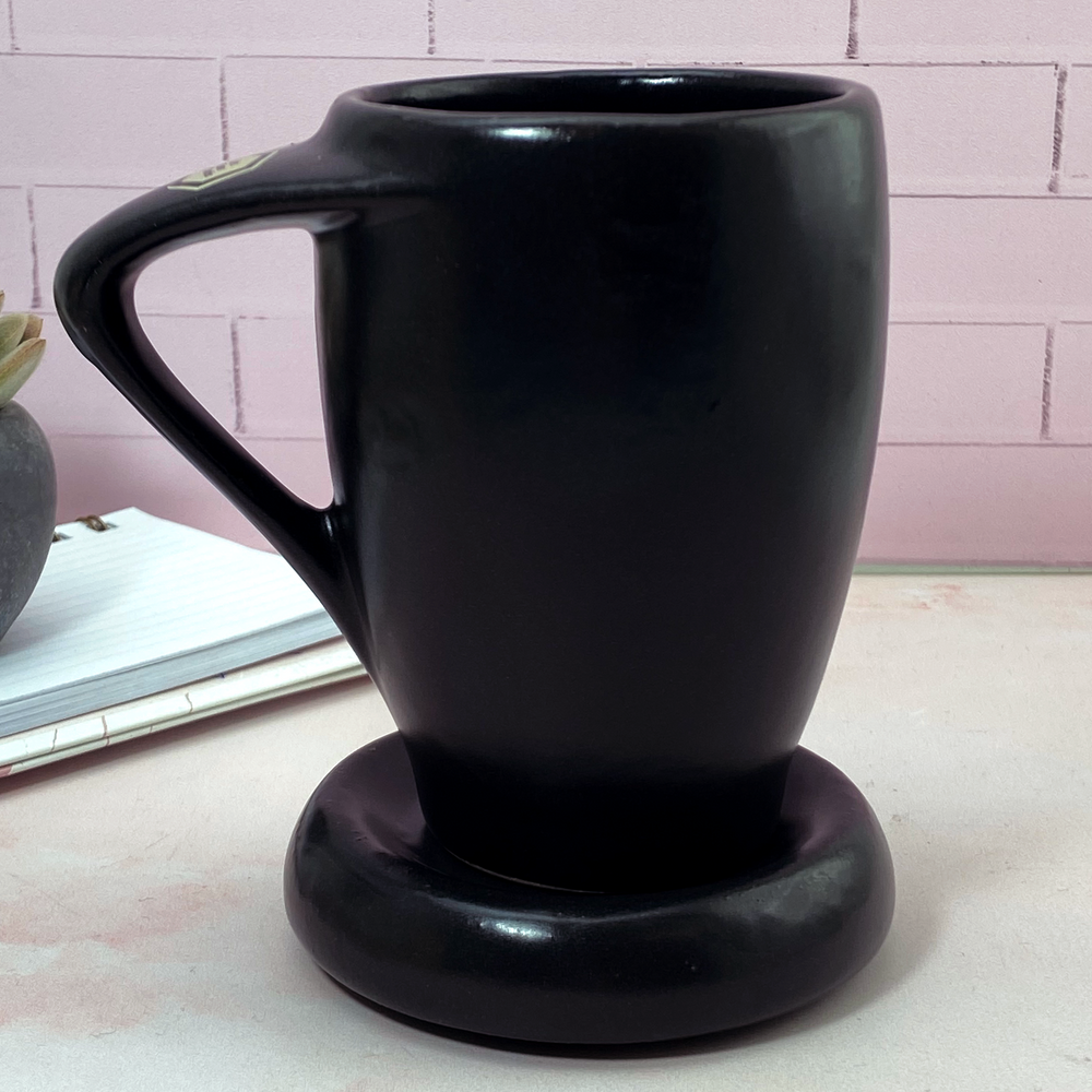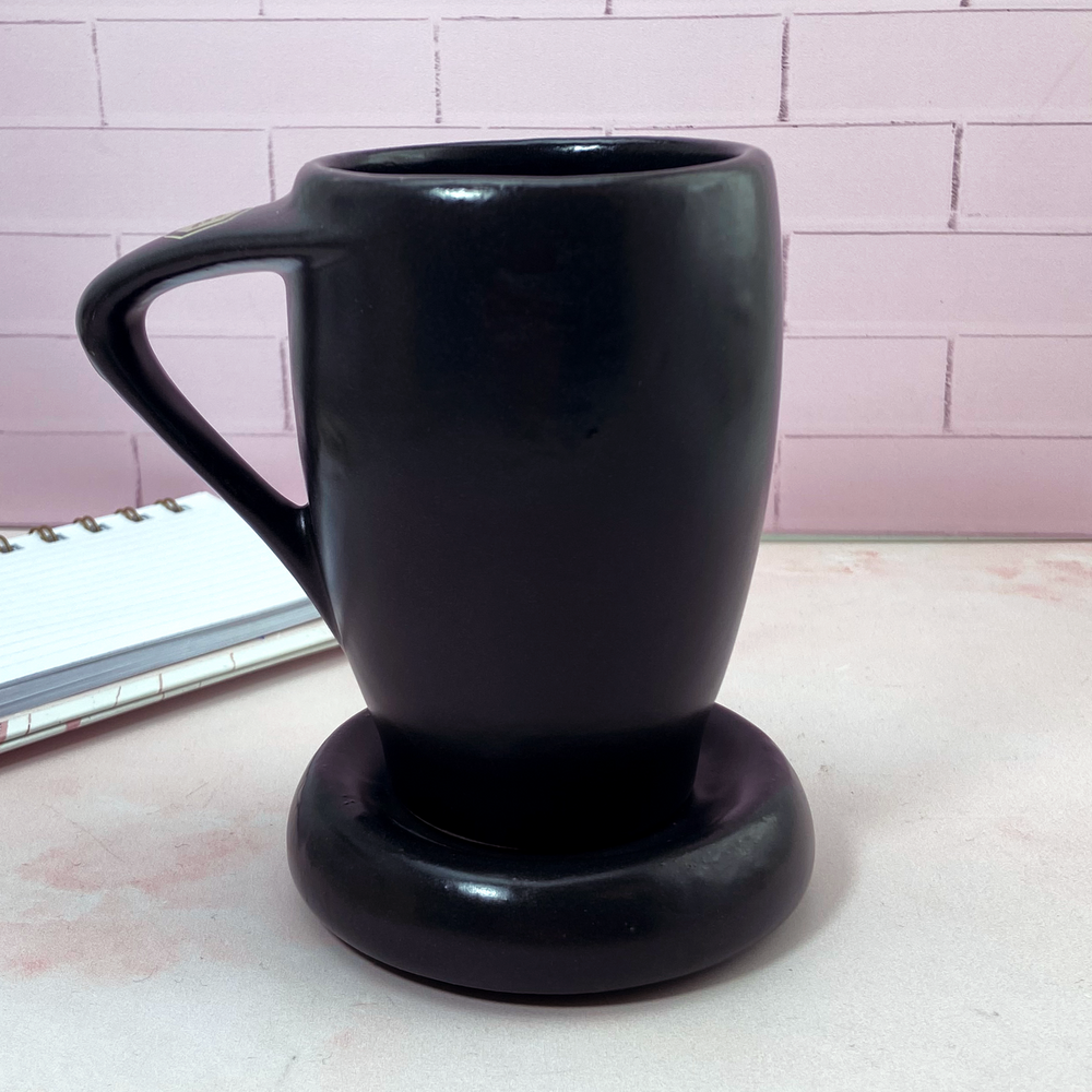 Taza de diseño, ideal para el café. Con tapa que mantiene la temperatura por más tiempo, también puede usarse como un pequeño plato ideal para apoyar la cuchara o una galletita.