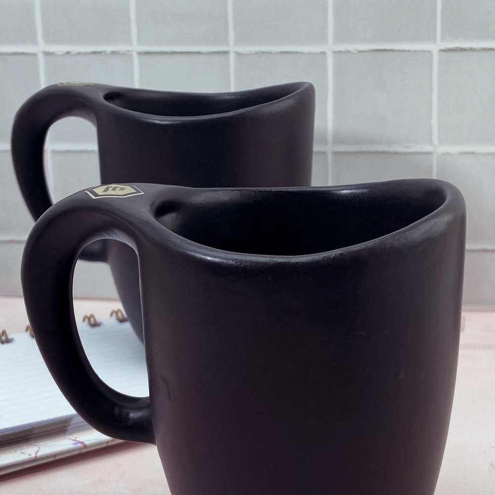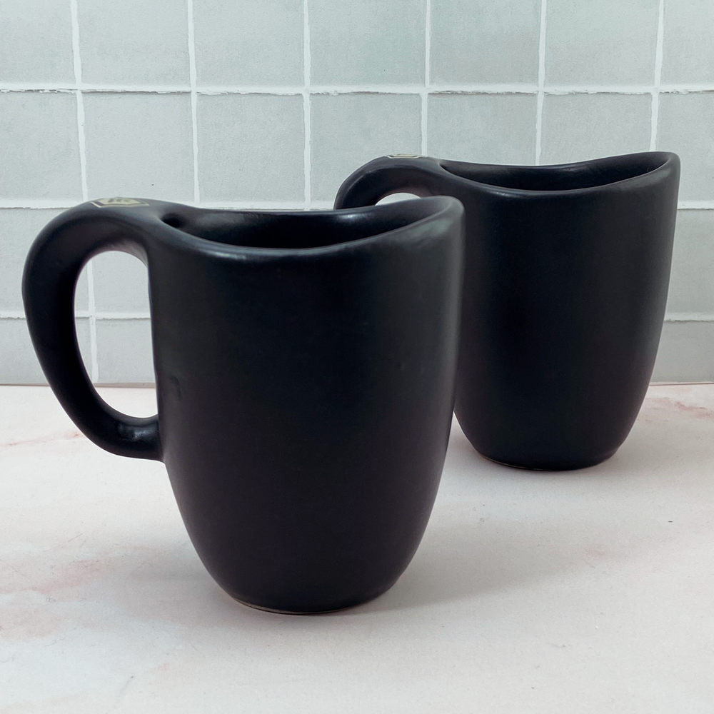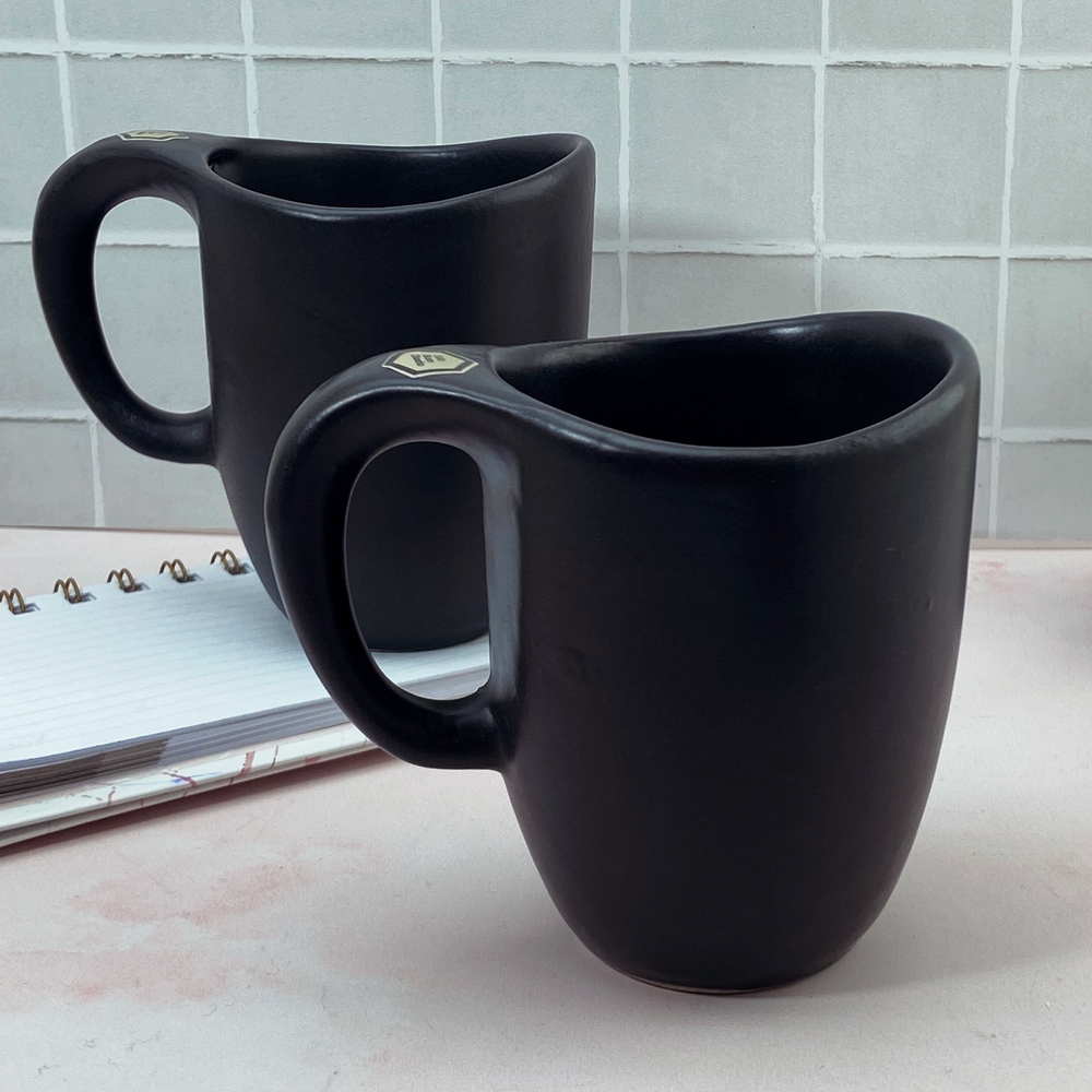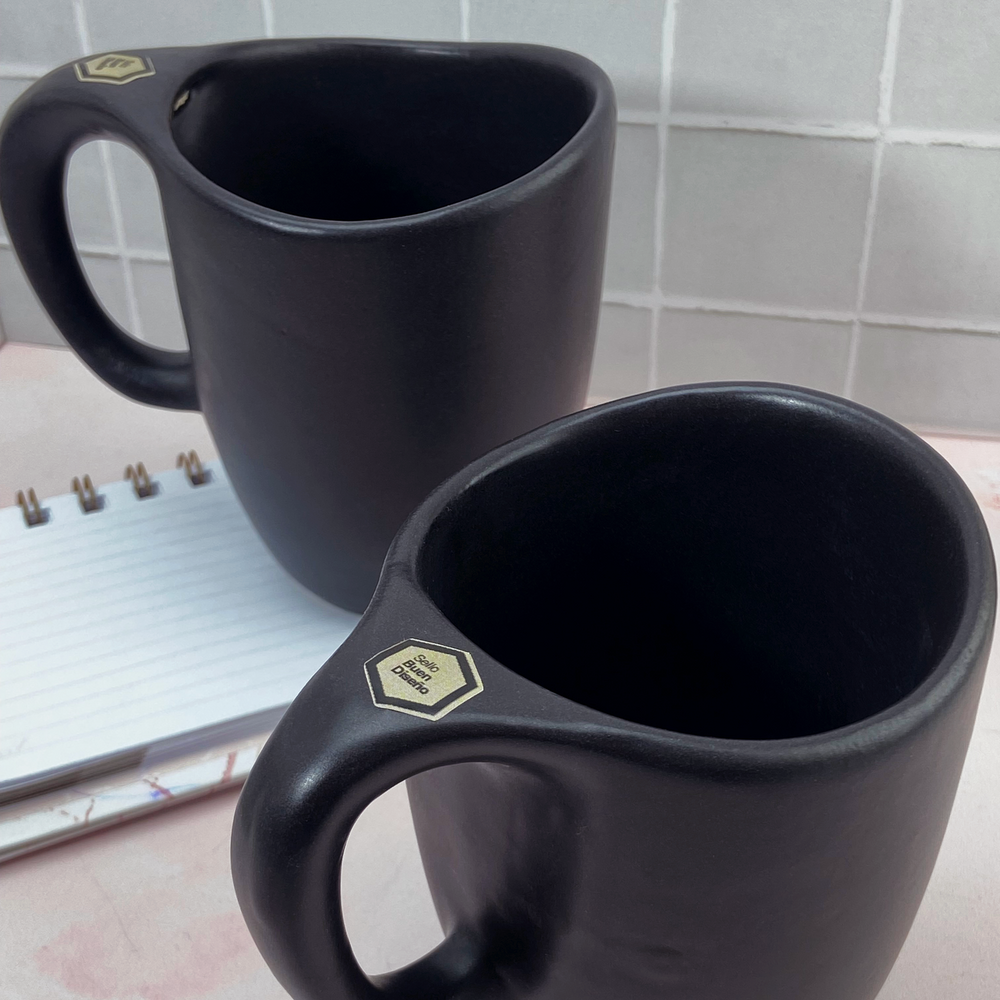 Jarro con diseño envolvente, un labio curvado y asa que nace con fluidez.