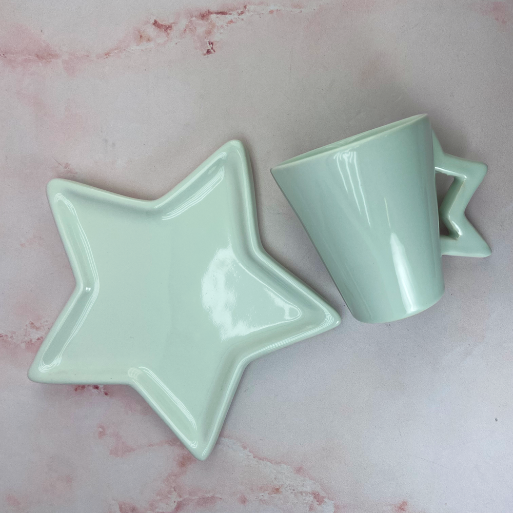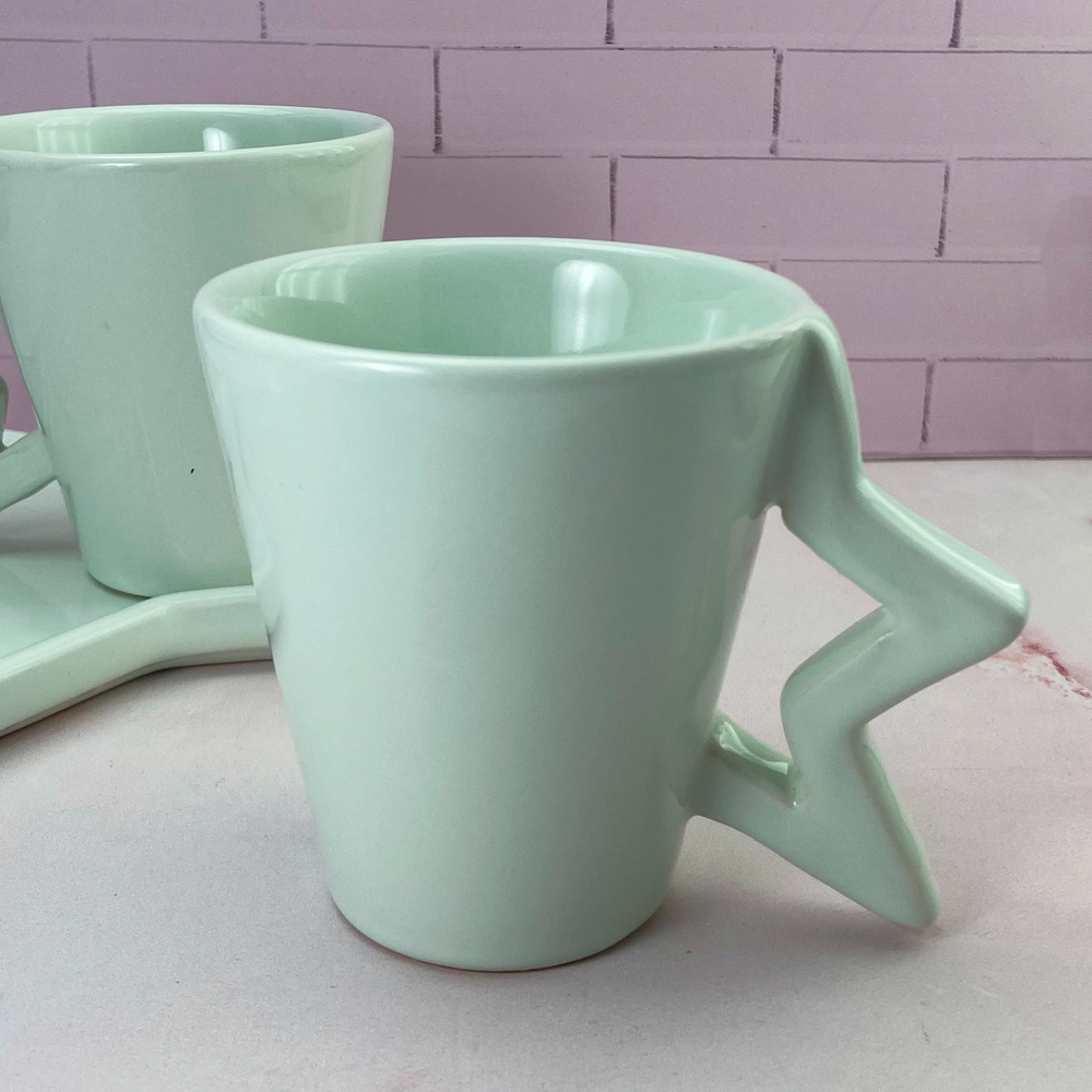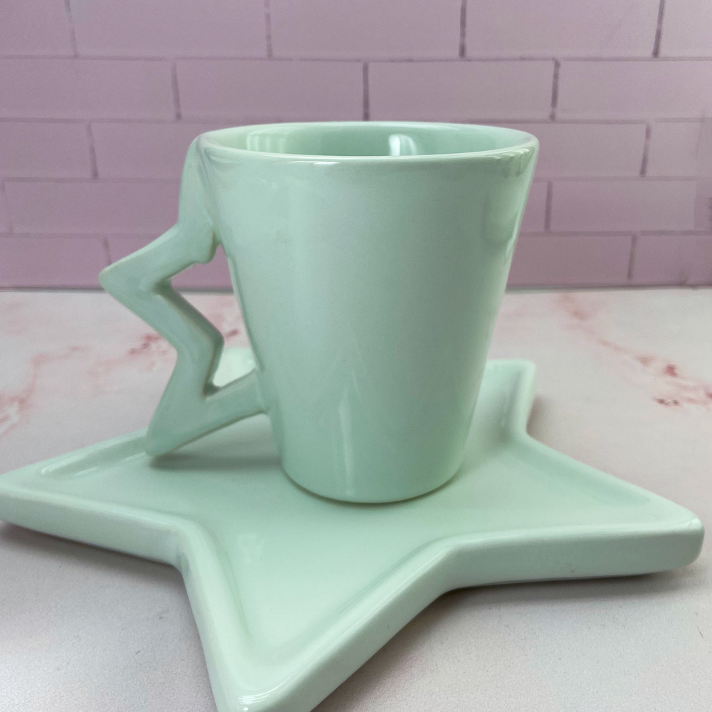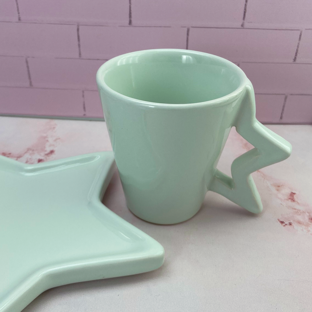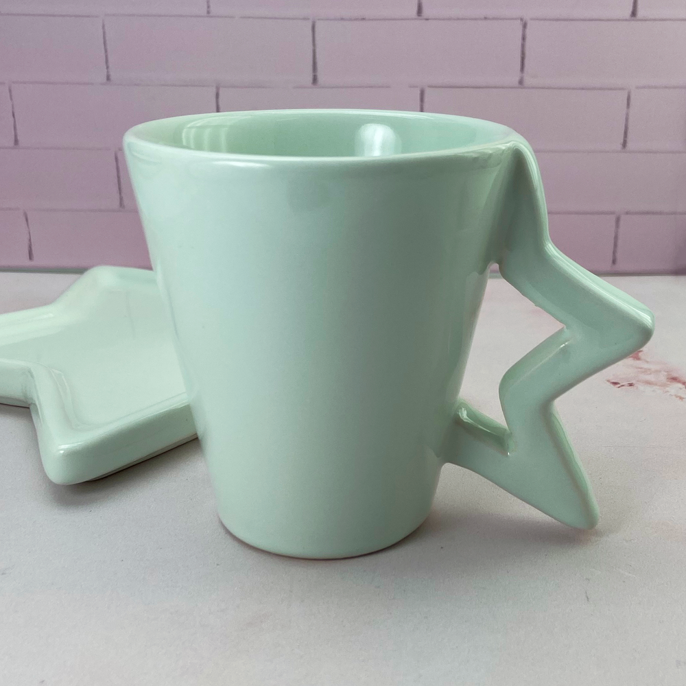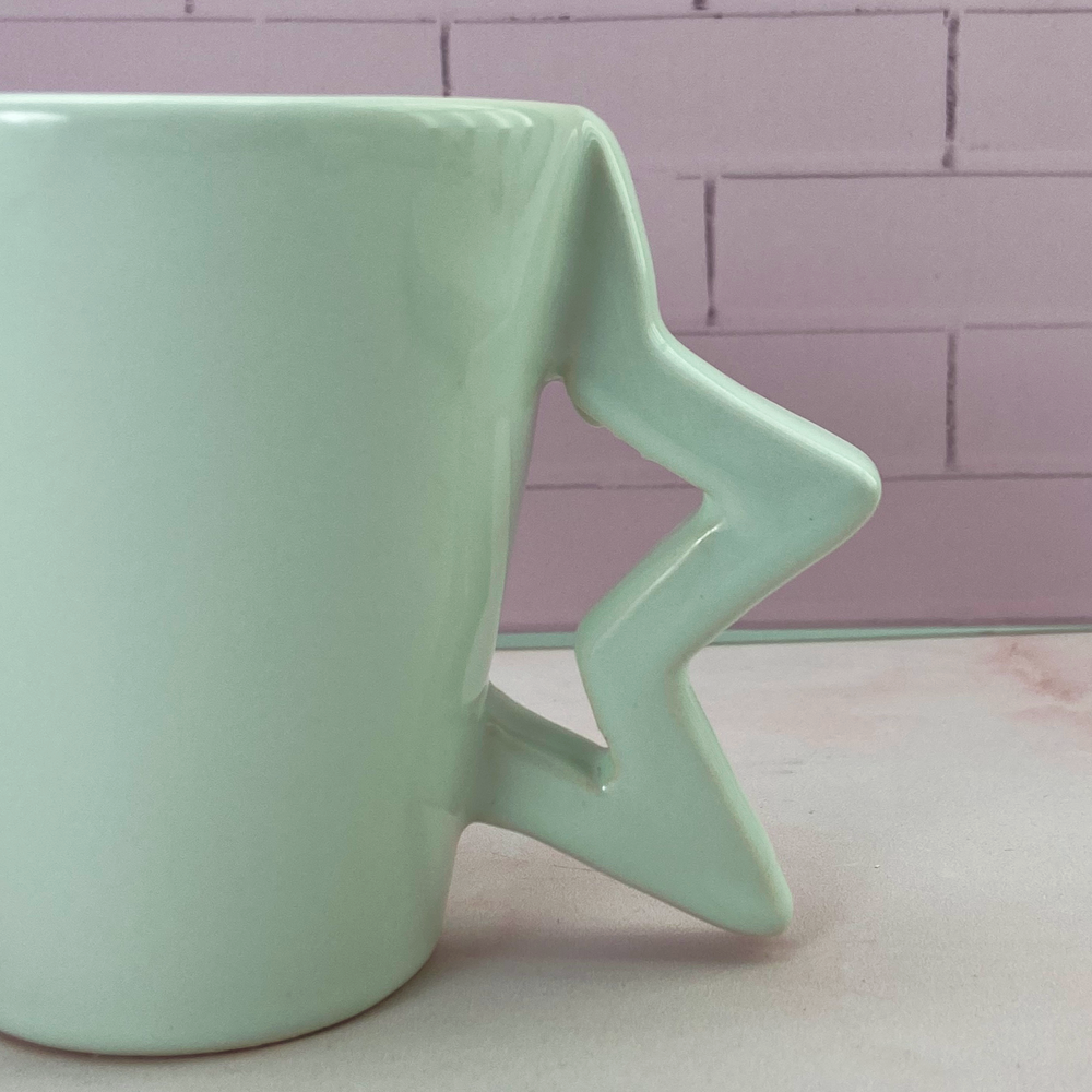 Taza de cerámica con asa de diseño de media estrella