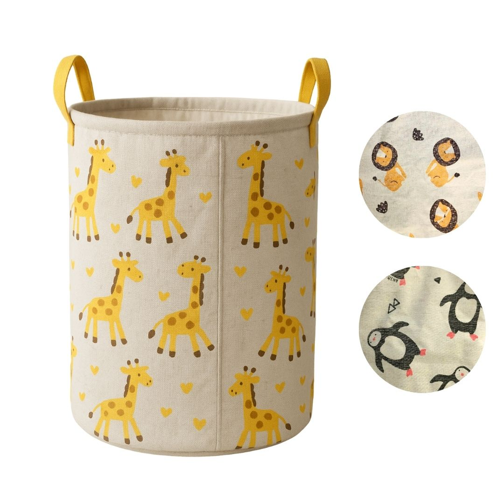 tres modelos: leon, jirafa, pinguino - medidas: - tela impermeable - con manijas - Ø 35 cm - alto: 43 cm