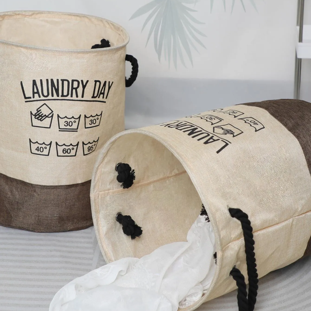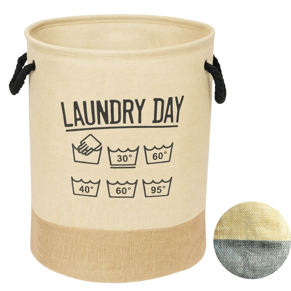 dos modelos: gris/beige - beige/marron - manijas de soga de algodon color negro - tela impermeable - Alto: 43 cm - Ø 34 cm