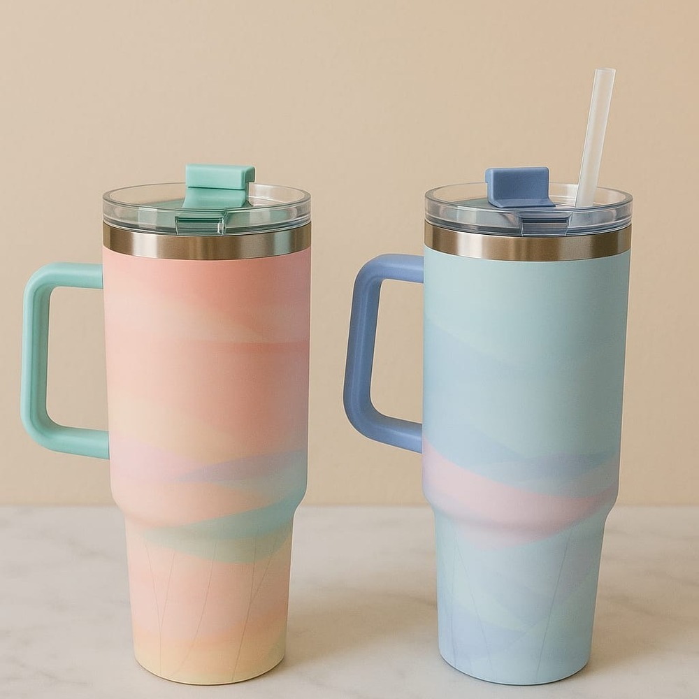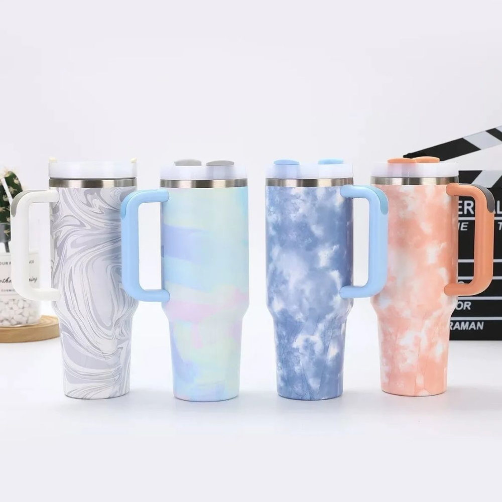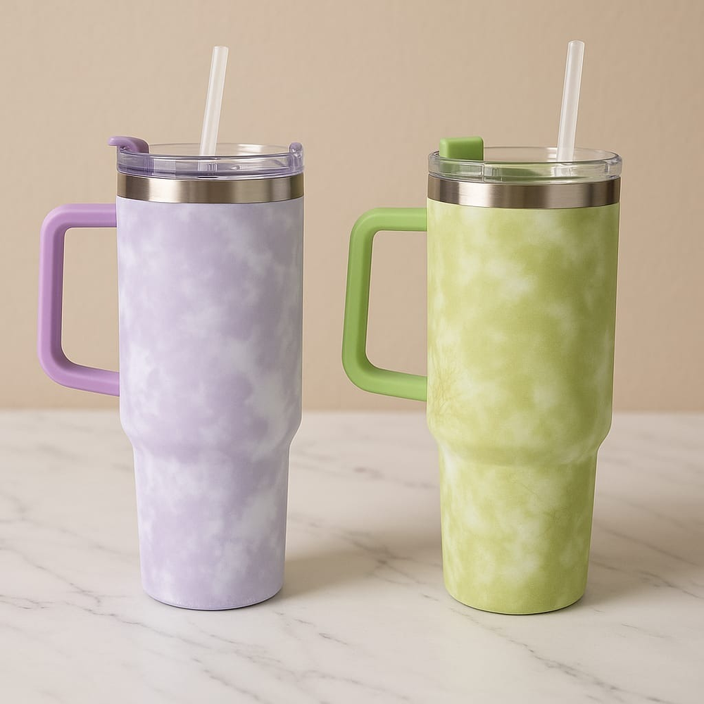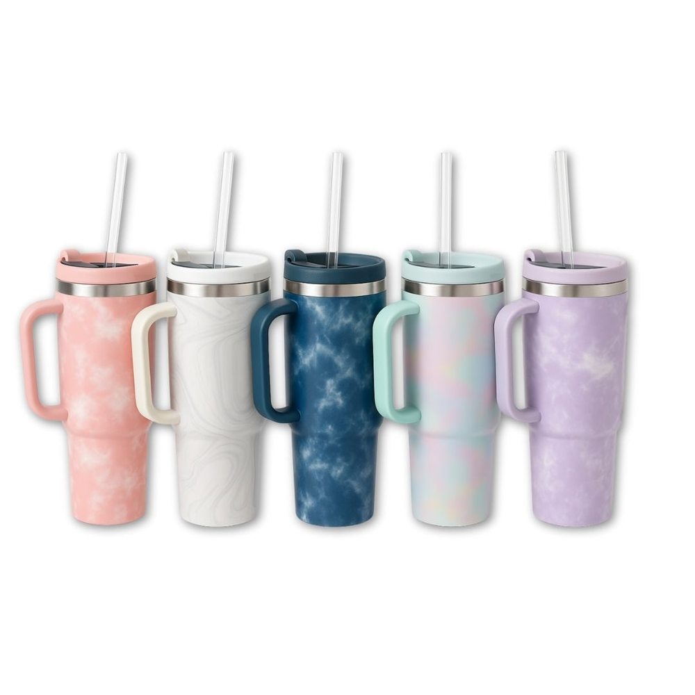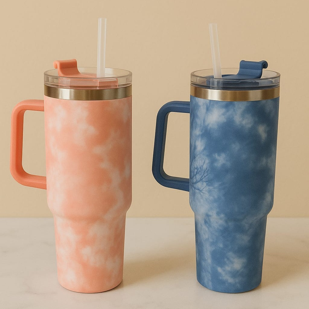Vaso tumbler de acero con manija 1200ml c/sorbete y pico en caja 28 x 15 x 11 cm