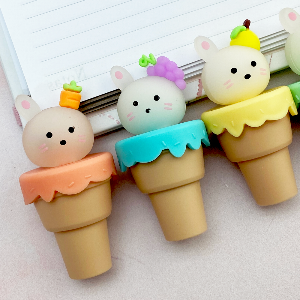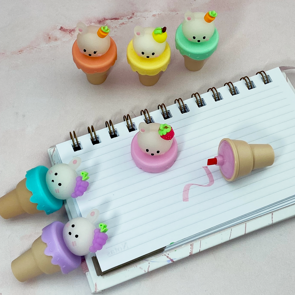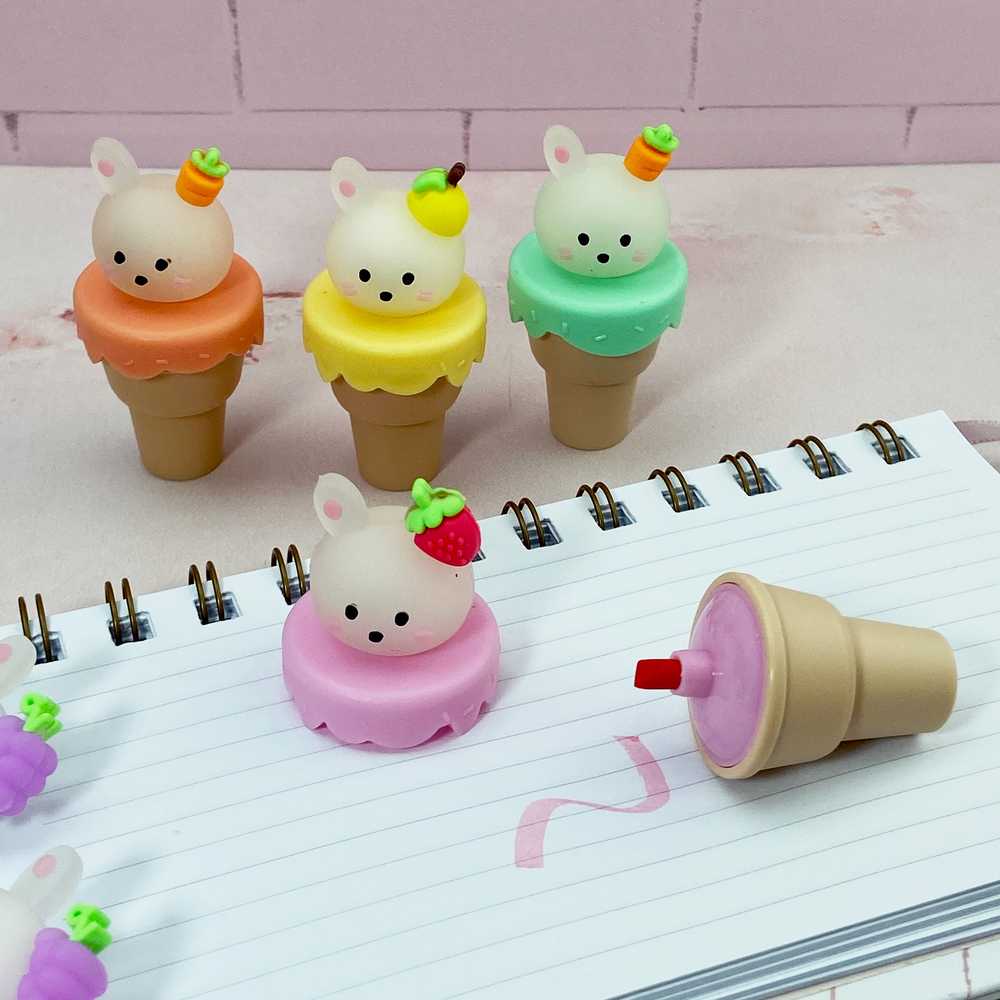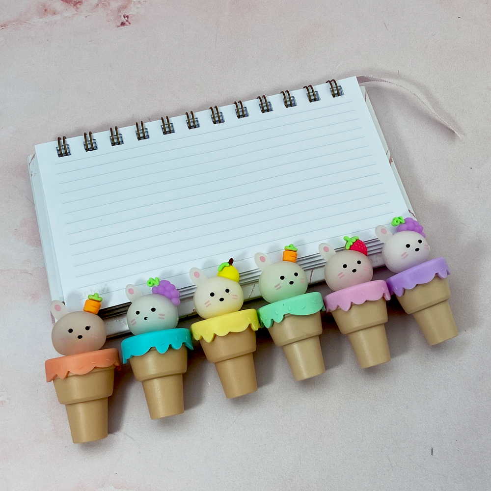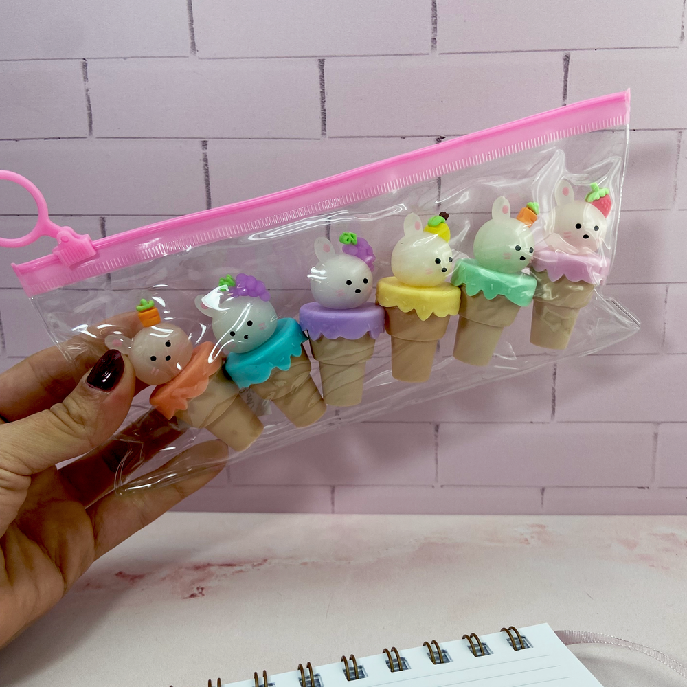 Resaltador pastel x 6 Conejo en cucurucho Estuche pvc 20 x 9 cm