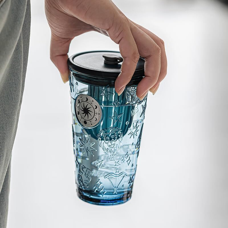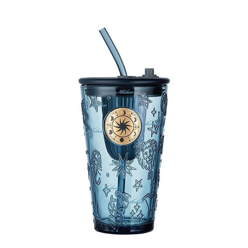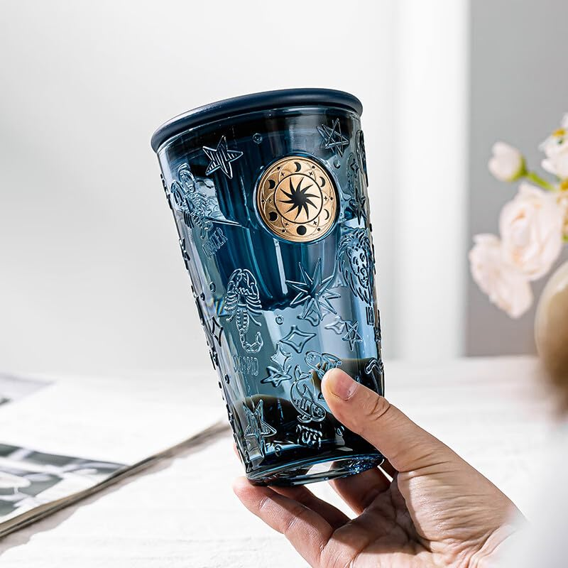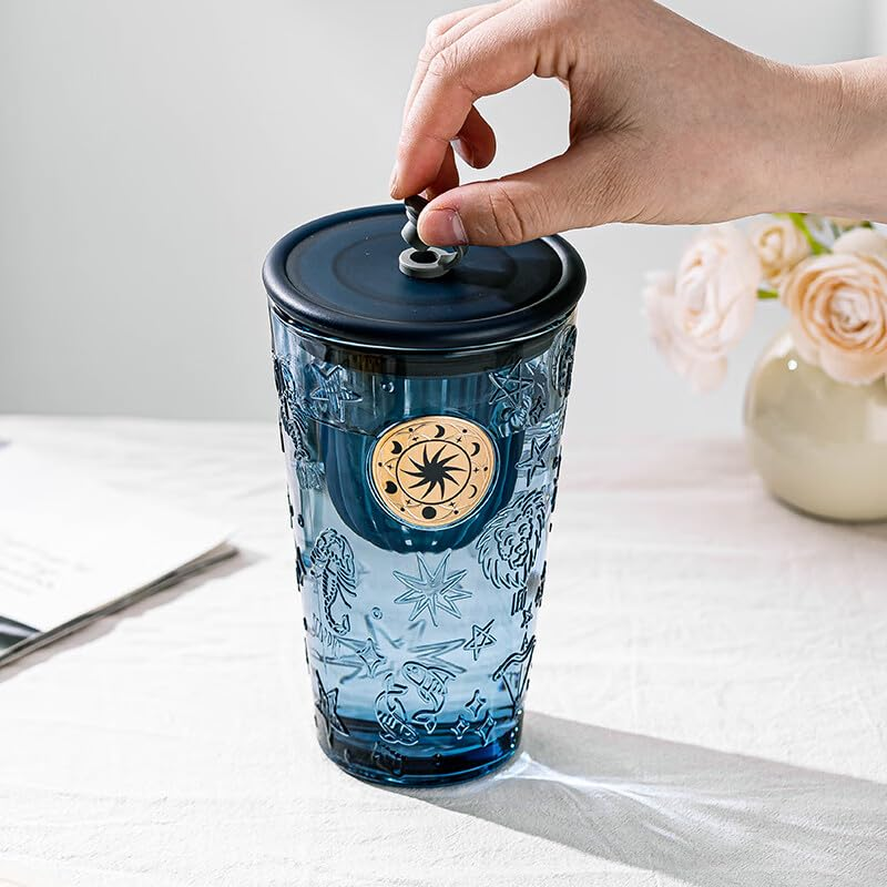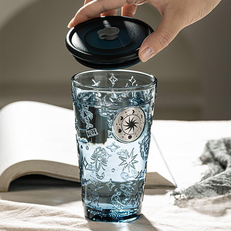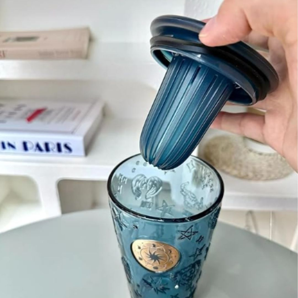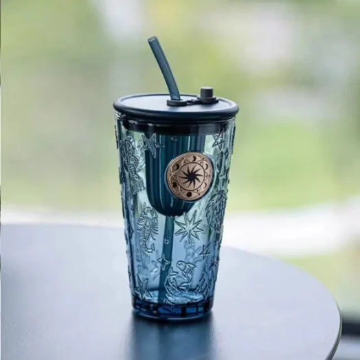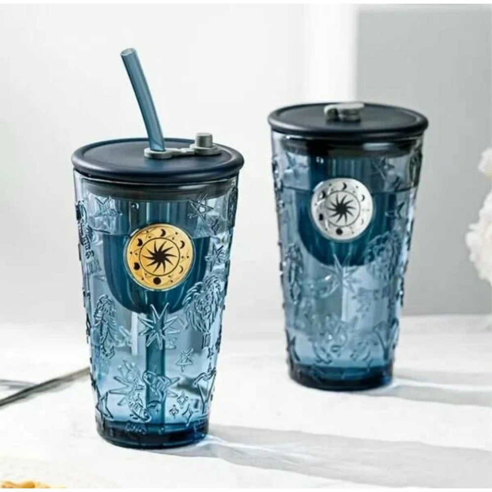 Vaso vidrio con sorbete de vidrio, tapa acrílica
