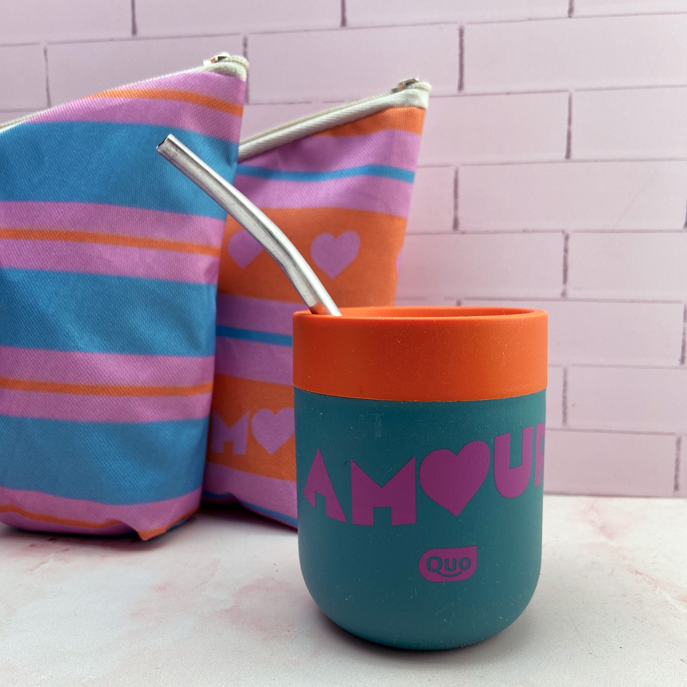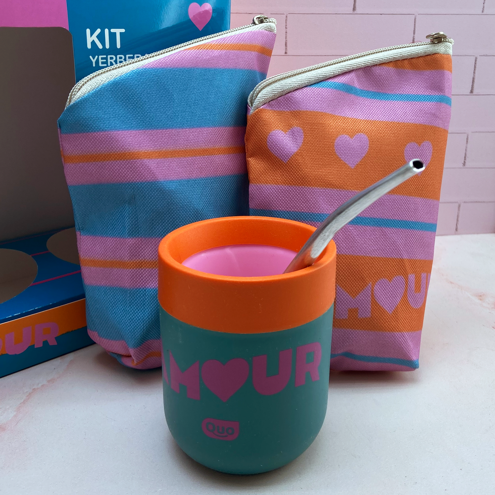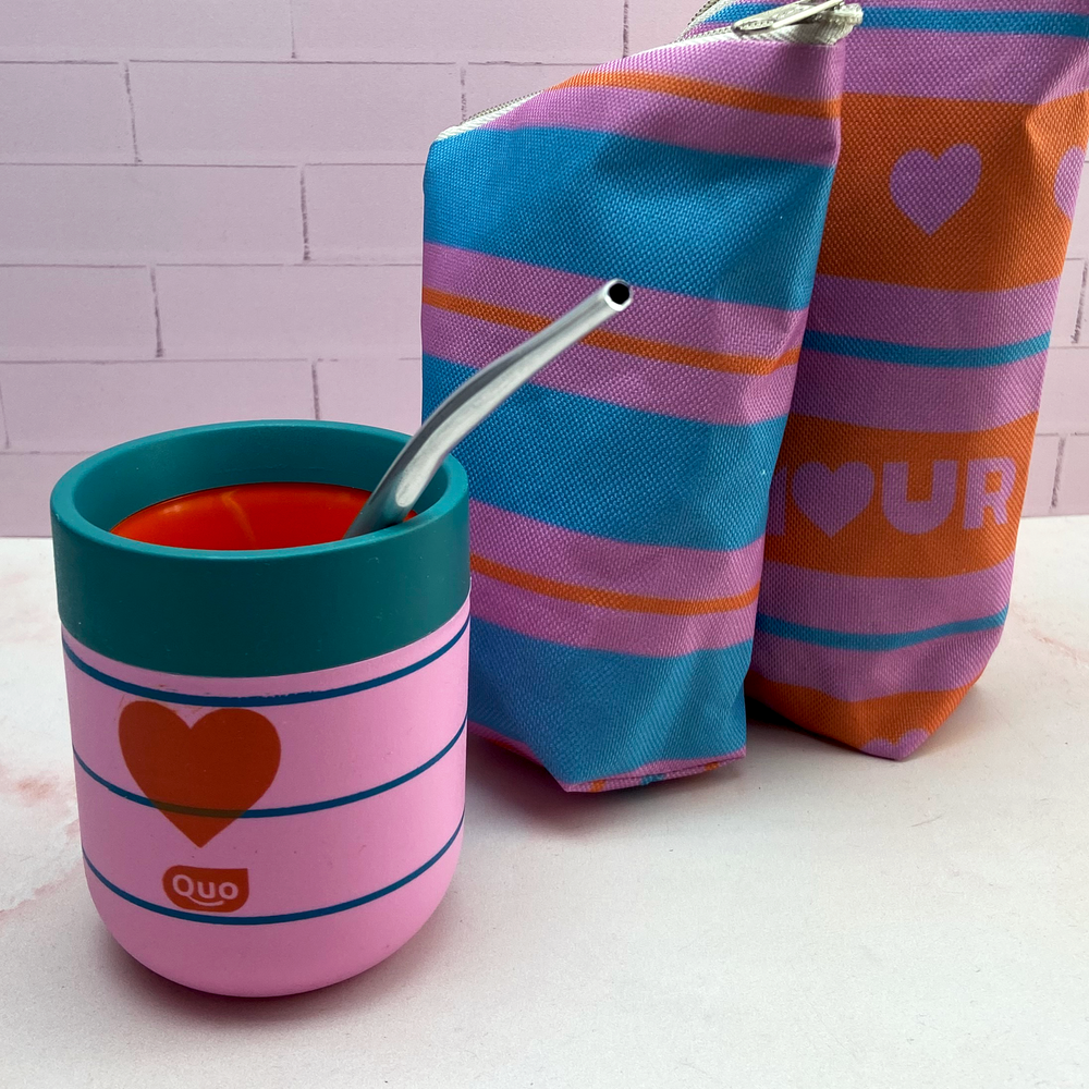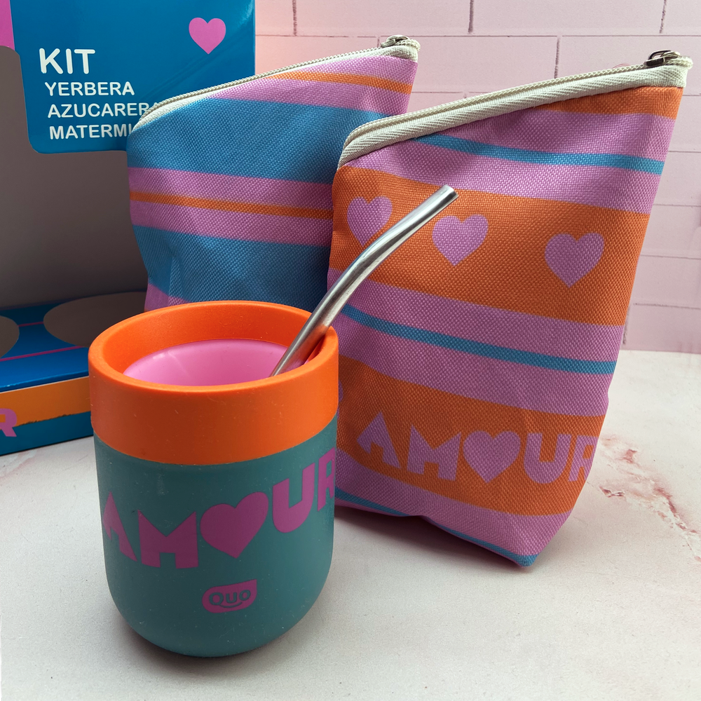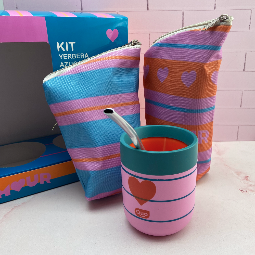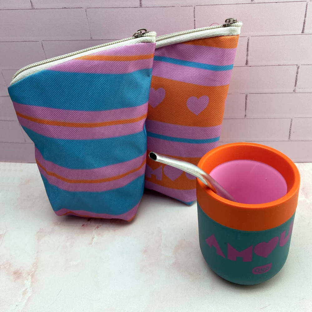 Incluye yerbera y azucarera de tela puffer, matérmico pop con bombilla y packaging