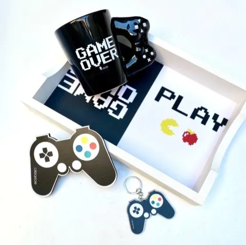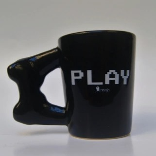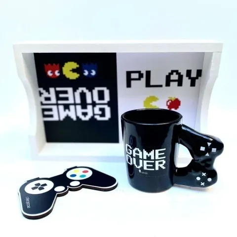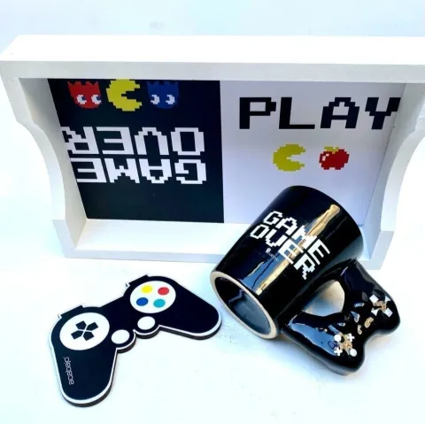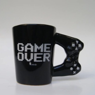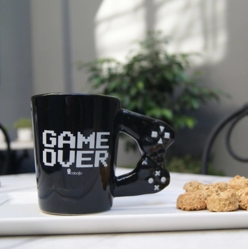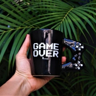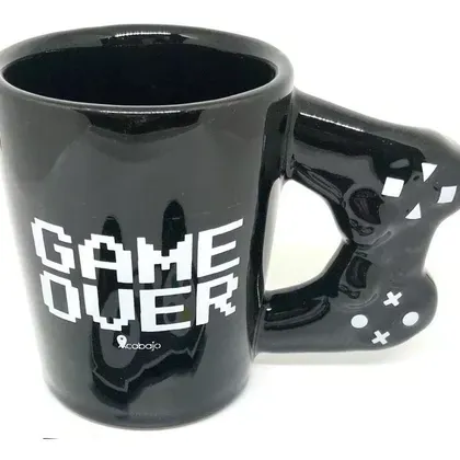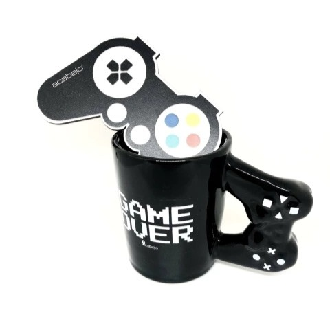 Taza de cerámica con ASA DE DISEÑO DE JAYSTICK Y ESTAMPADO "GAME OVER", CERÁMICA EN COLOR NEGRO