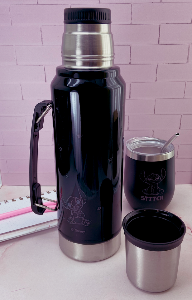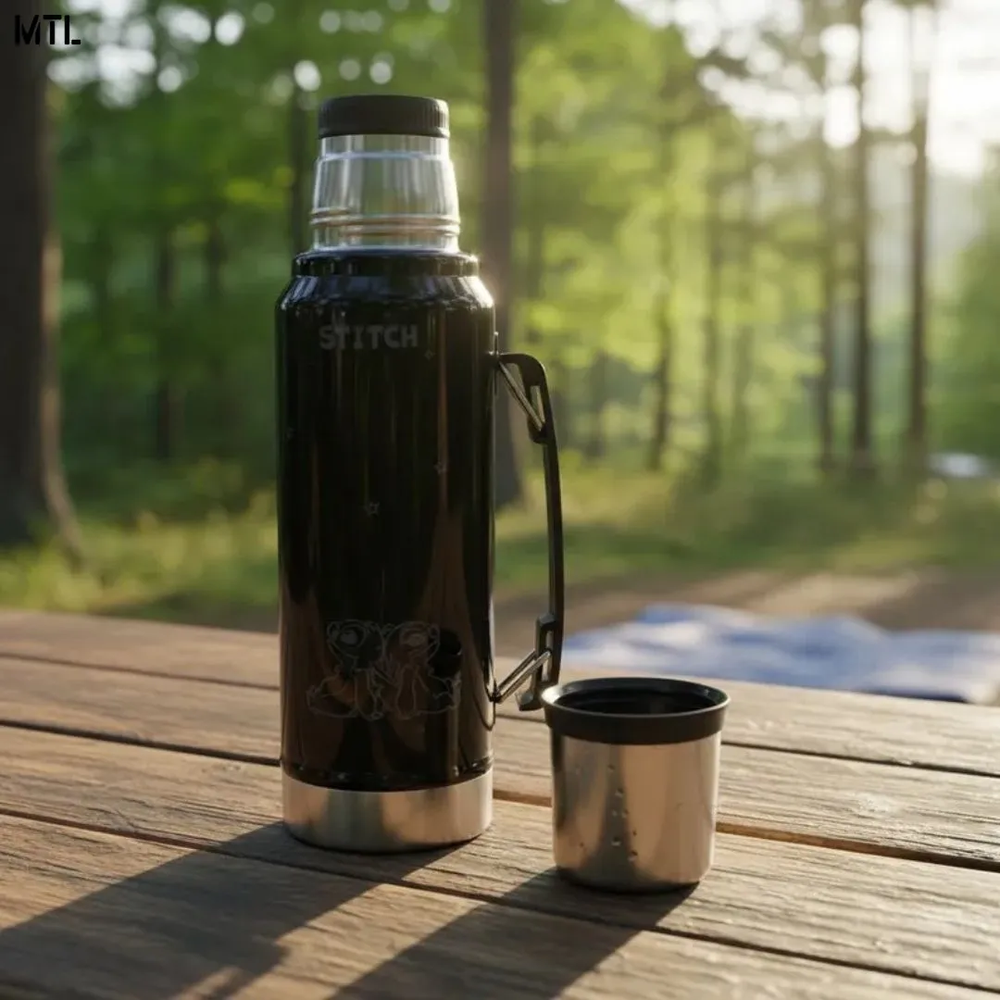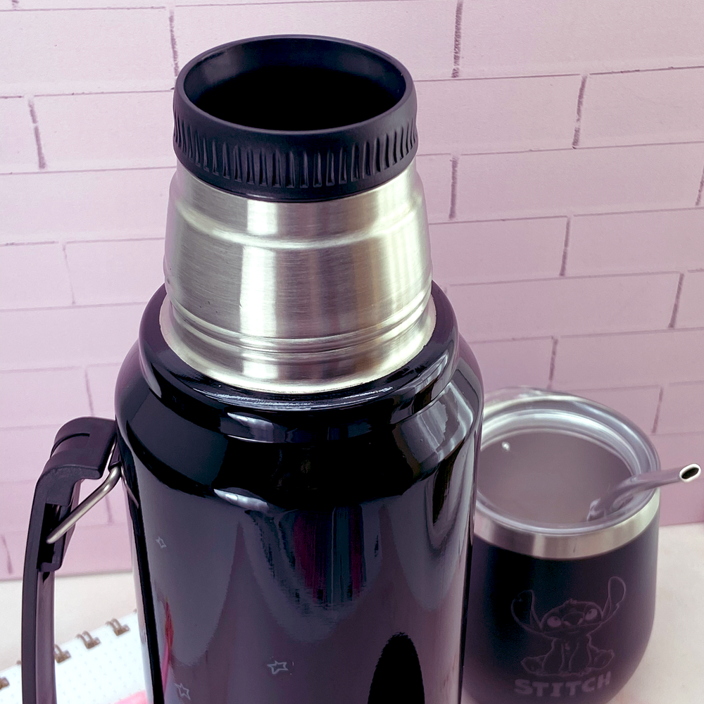 Termo negro de acero inoxidable con capacidad de 1 litro