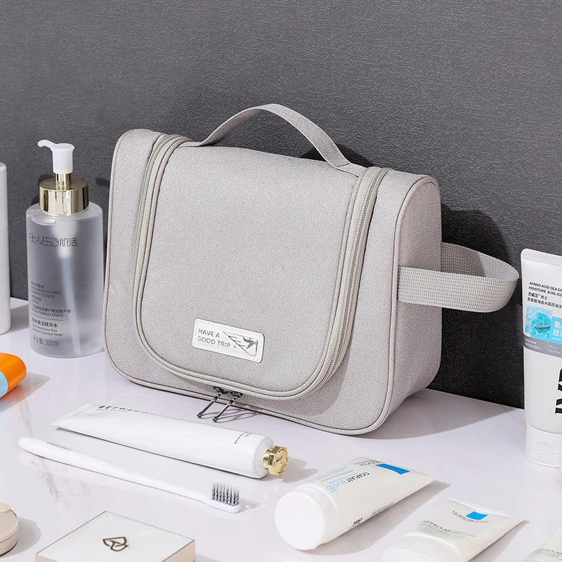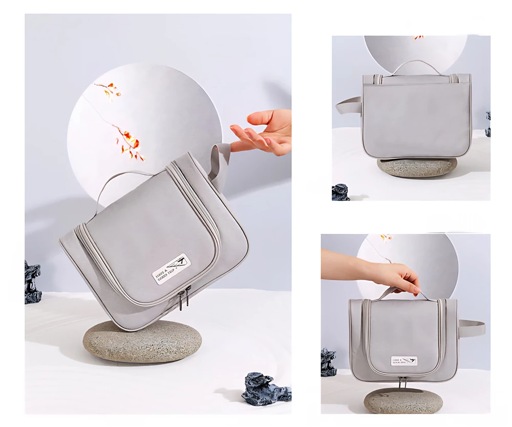 Neceser organizador de viaje con gancho, ideal para guardar cosméticos y artículos de tocador. Permite organizar eficientemente productos de cuidado personal, maquillaje y artículos de aseo gracias a sus compartimentos internos y bolsillos de malla. Incluye un gancho para colgarlo fácilmente en baños o armarios, facilitando el acceso a los artículos y manteniendo el espacio ordenado, ideal para viajes o baños pequeños. Fabricado en materiales resistentes, con costuras y cremalleras de calidad para asegurar durabilidad. Es adecuado tanto para hombres como para mujeres, y es útil para viajes, vacaciones, paseos o incluso para organizar artículos en casa