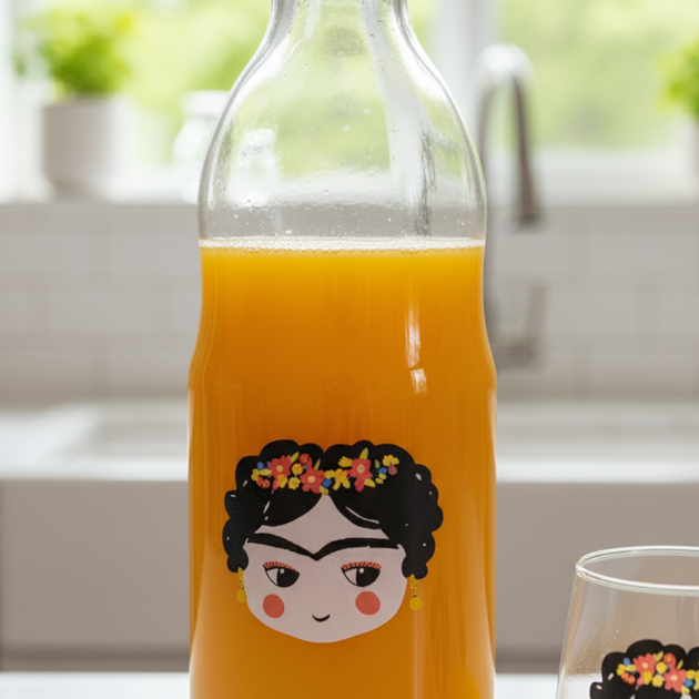 Botella de vidrio de 1 litro, con diseño de Frida Kahlo