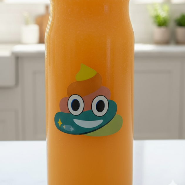 Botella de vidrio de 1 litro, con diseño de popo multicolor