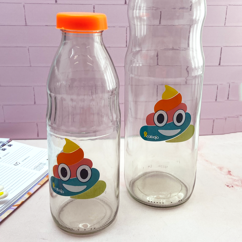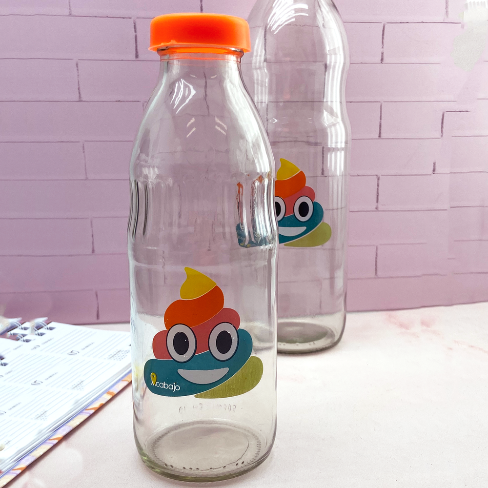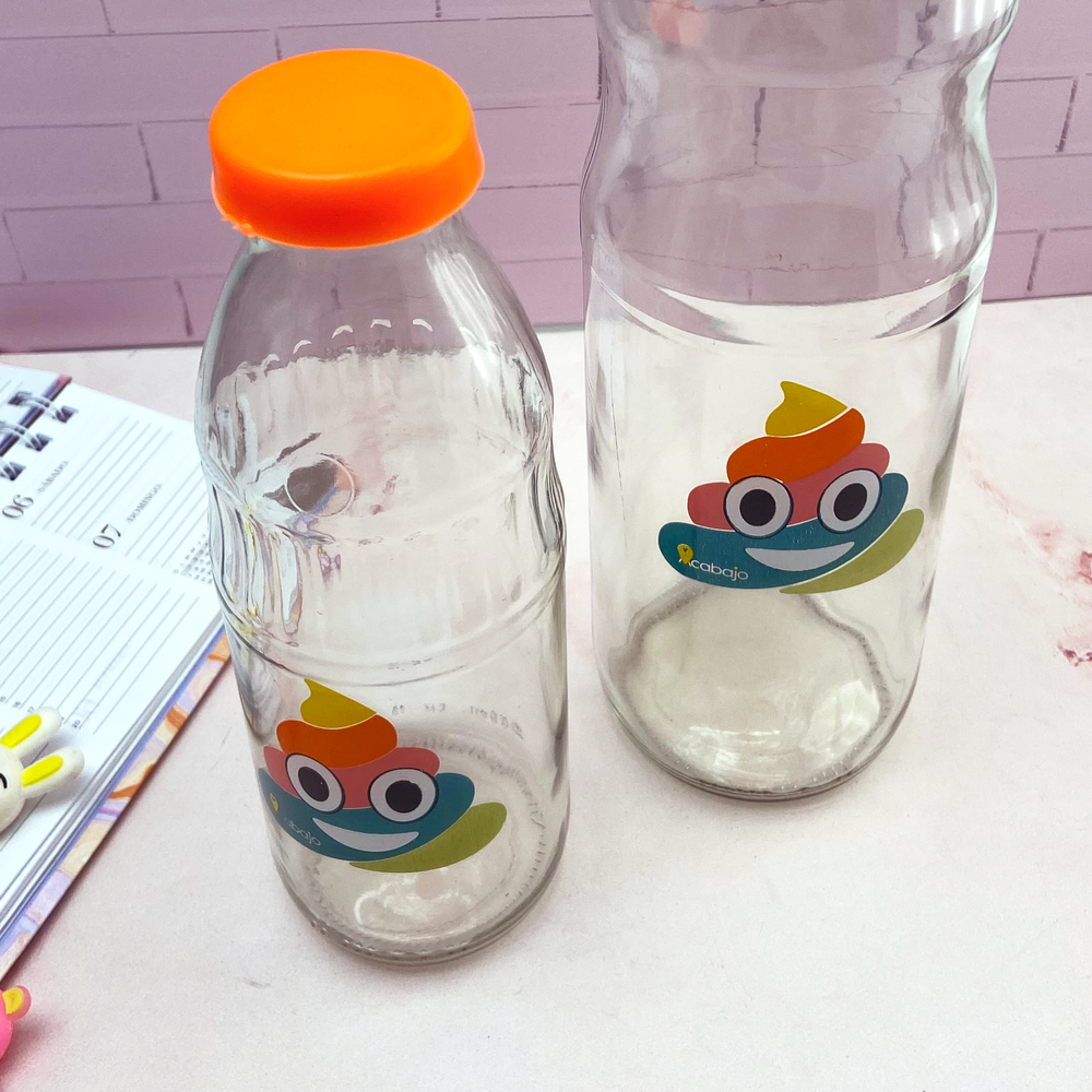 Botella de vidrio de 500ml, con diseño de Popó multicolor