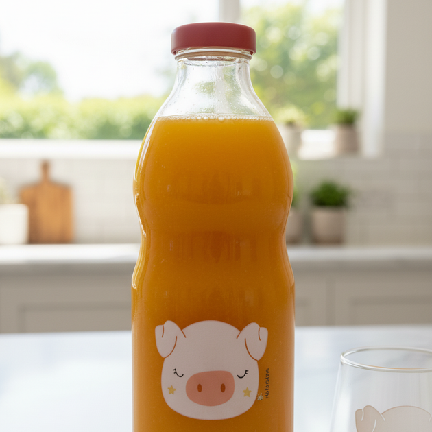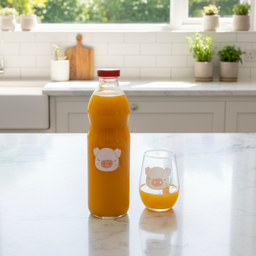 Botella de vidrio de 1 litro, con diseño de Chancho