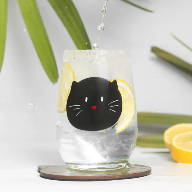Vaso de vidrio con diseño de gato negro 👉Libre de BPA