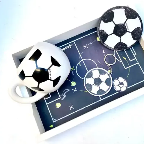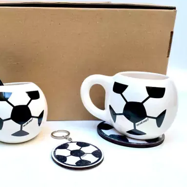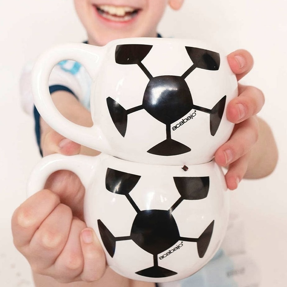 Taza de cerámica con diseño de pelota Material: Cerámica Capacidad en volumen: 300 cc. Altura: 9 cm Base: 7,5 cm Diámetro de la Boca: 6 cm Apta Microondas y Lavavajillas