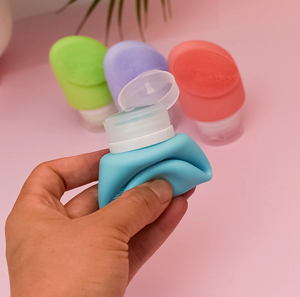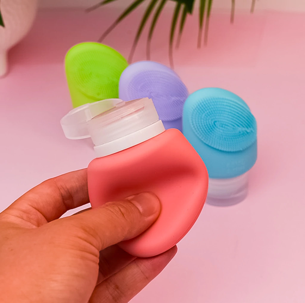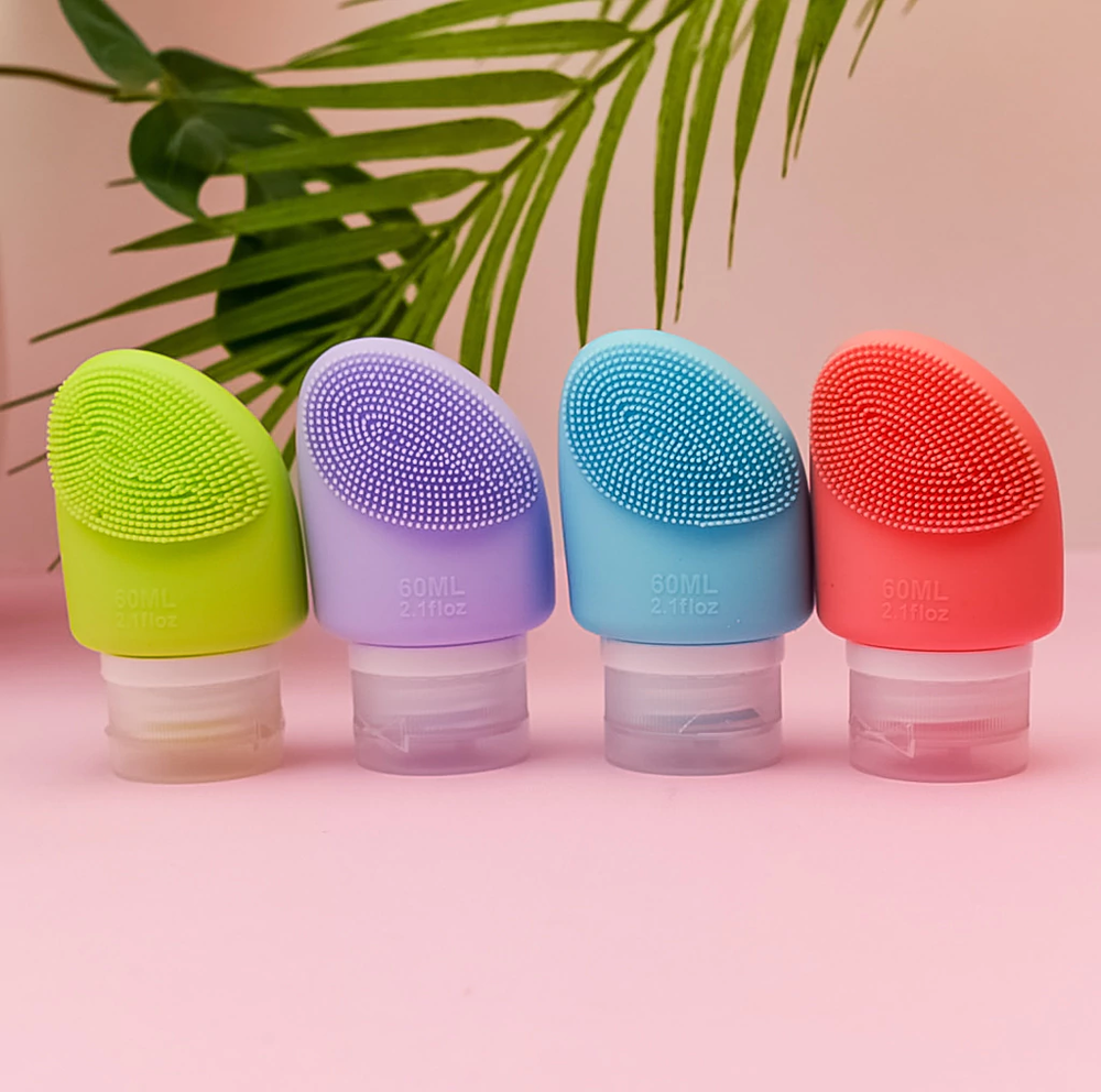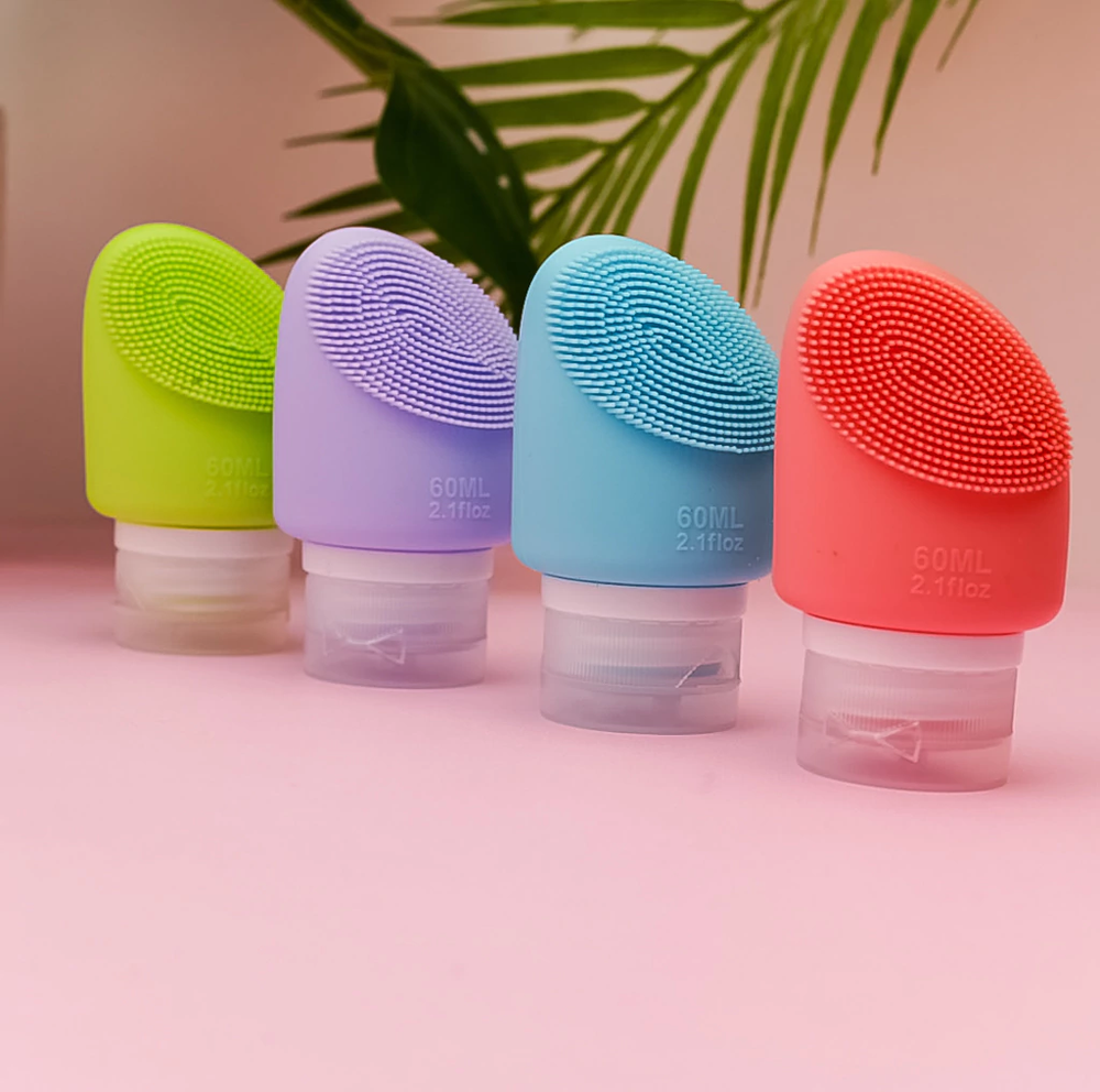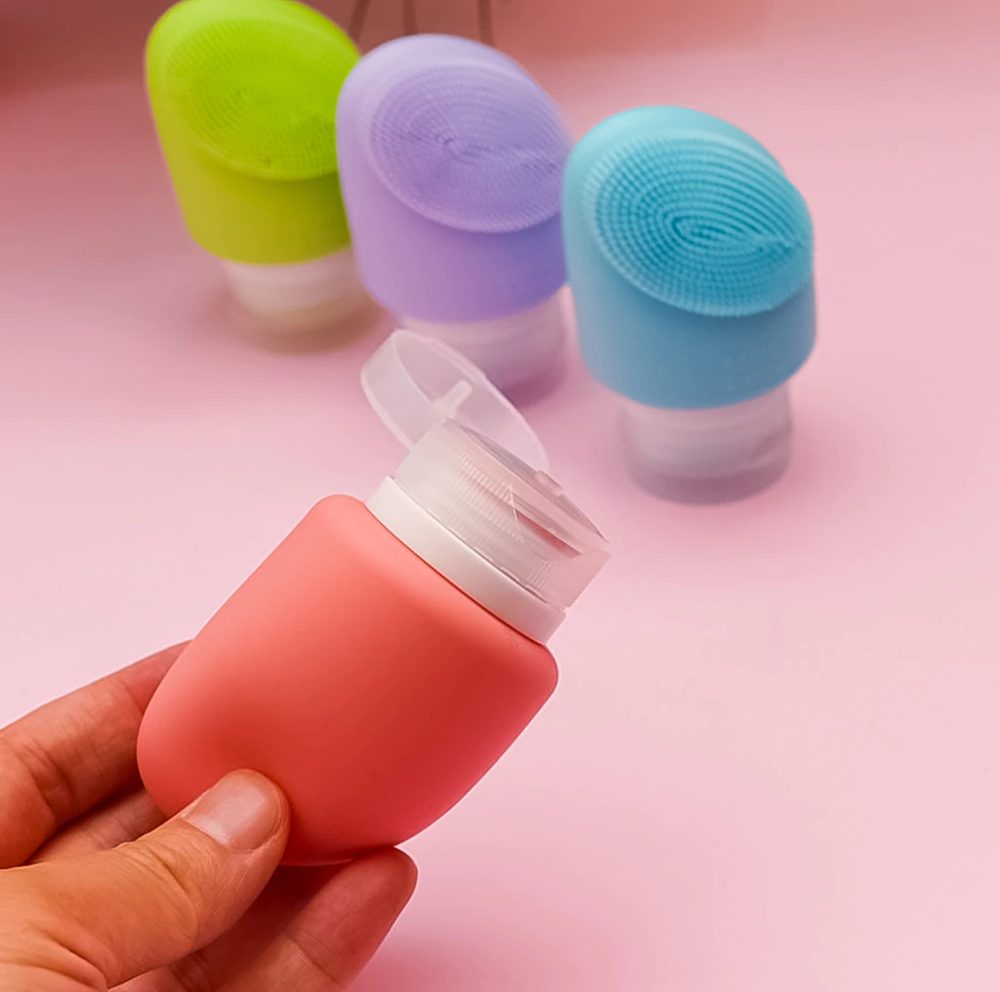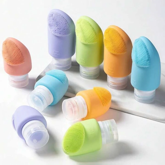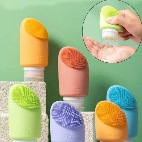 Botellita con capacidad de 60ml y en la punta posee un limpiador facial. Ideal para almacenar champú, maquillaje, protector solar, etc.