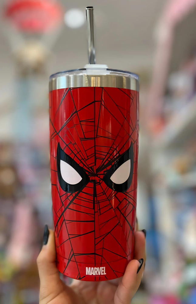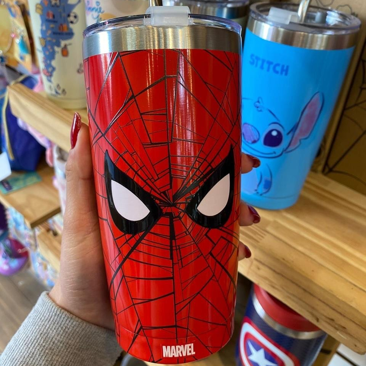 Vaso térmico de acero inoxidable, con tapa transparente y sorbete metálico.