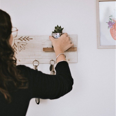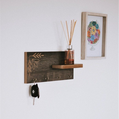 Portallaves con 4 tiradores metálicos escuadra, con estante.