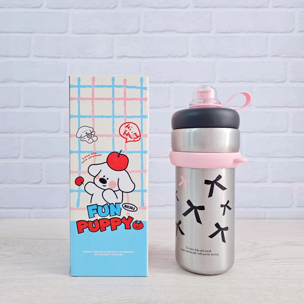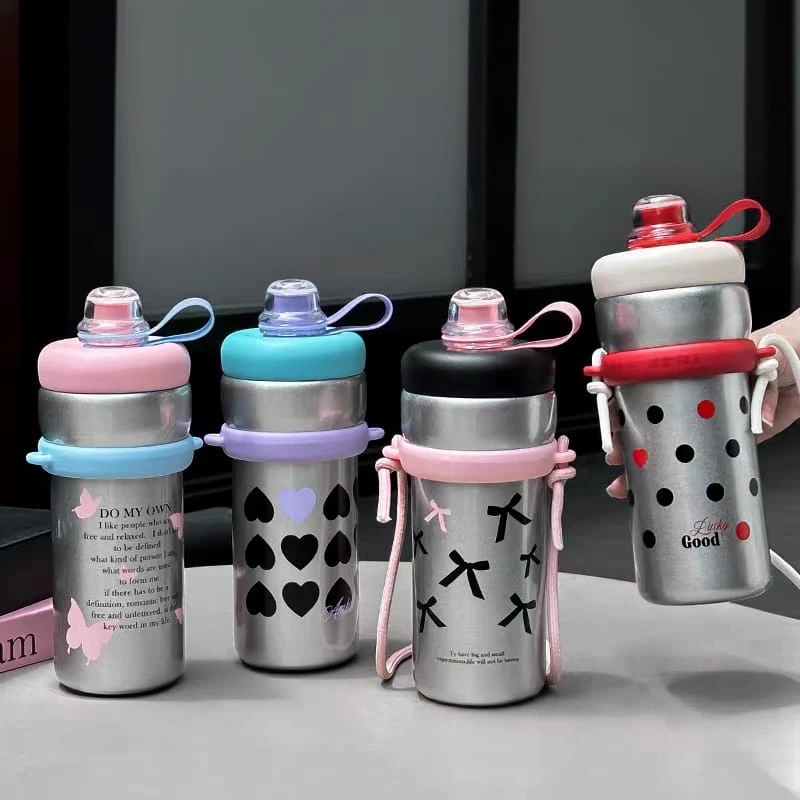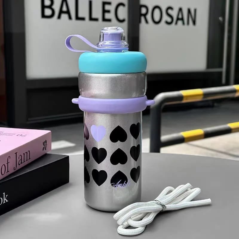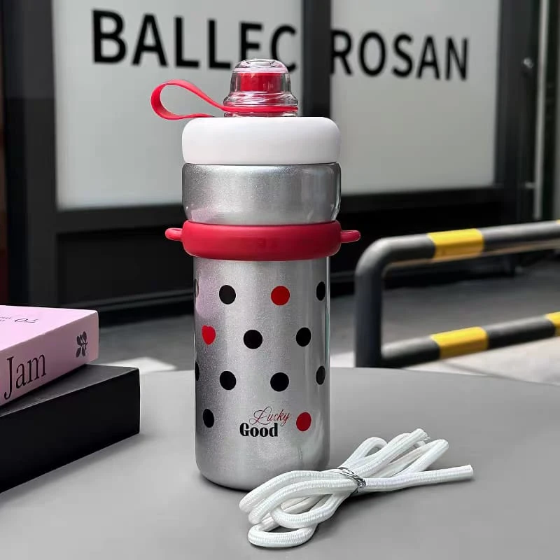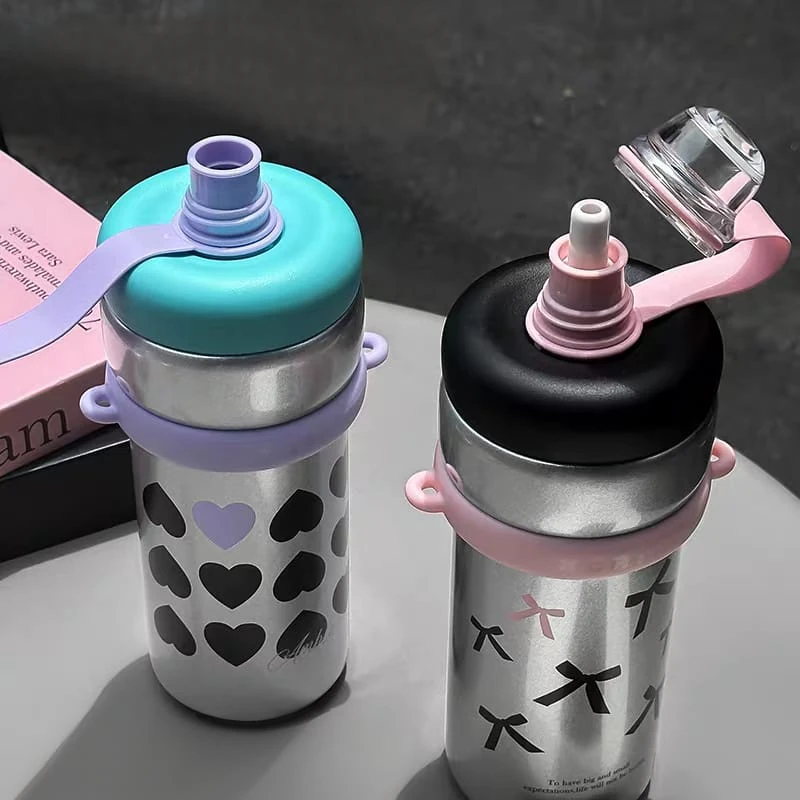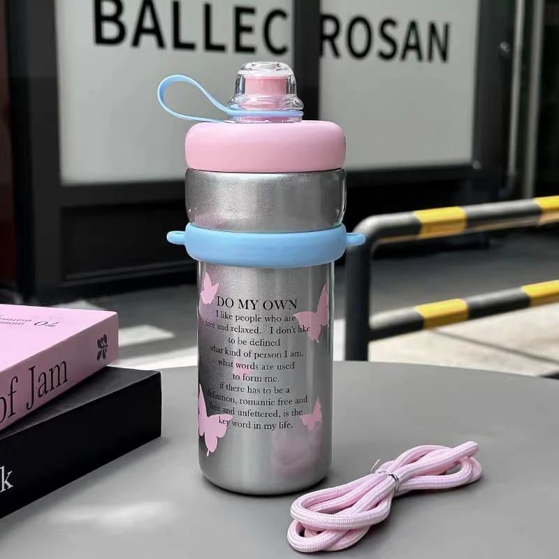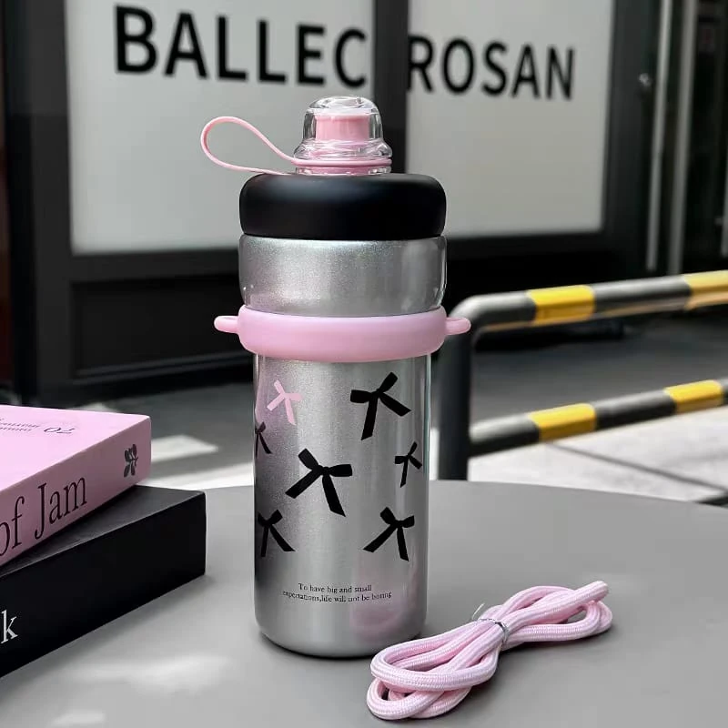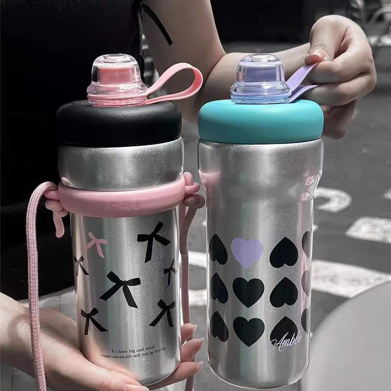 Botella / vaso térmico, con tapa a rosca y sorbete Con correa