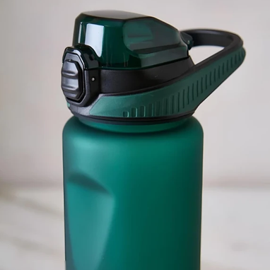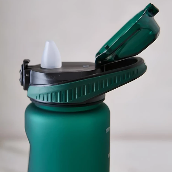 Botella plástica con diseño "H2O", con tapa y sorbete Con agarre y medición de ml