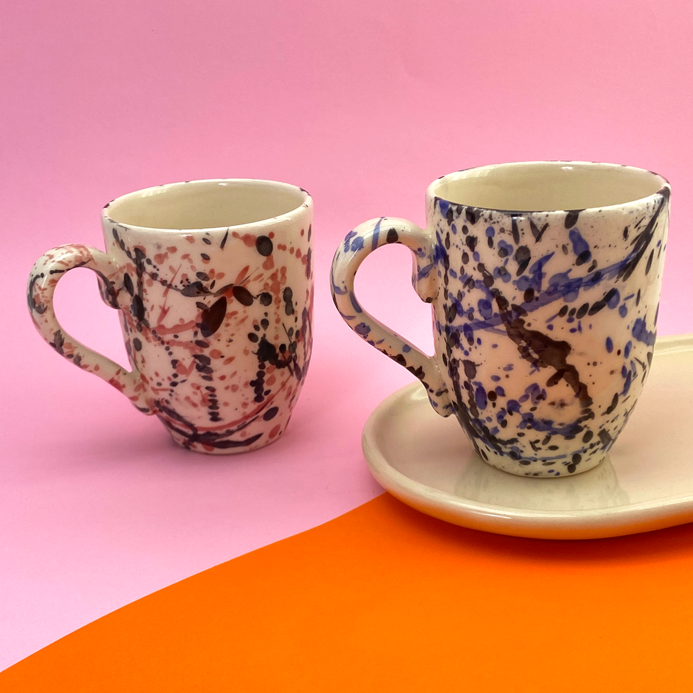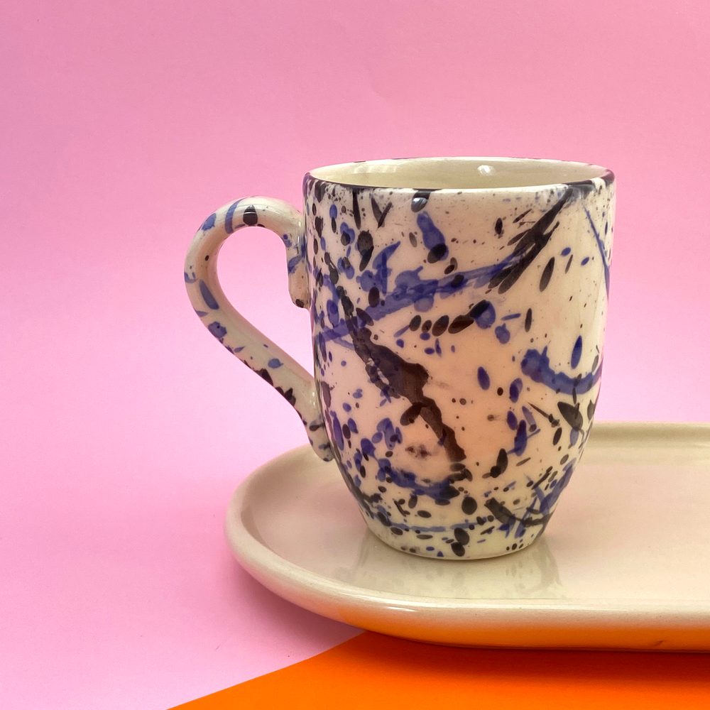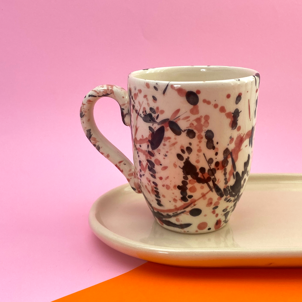 Taza bombé color base beige con diseño de manchas en 2 colores