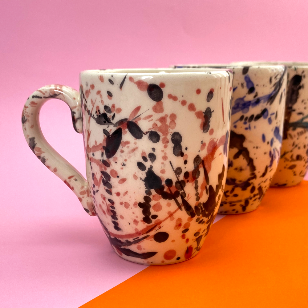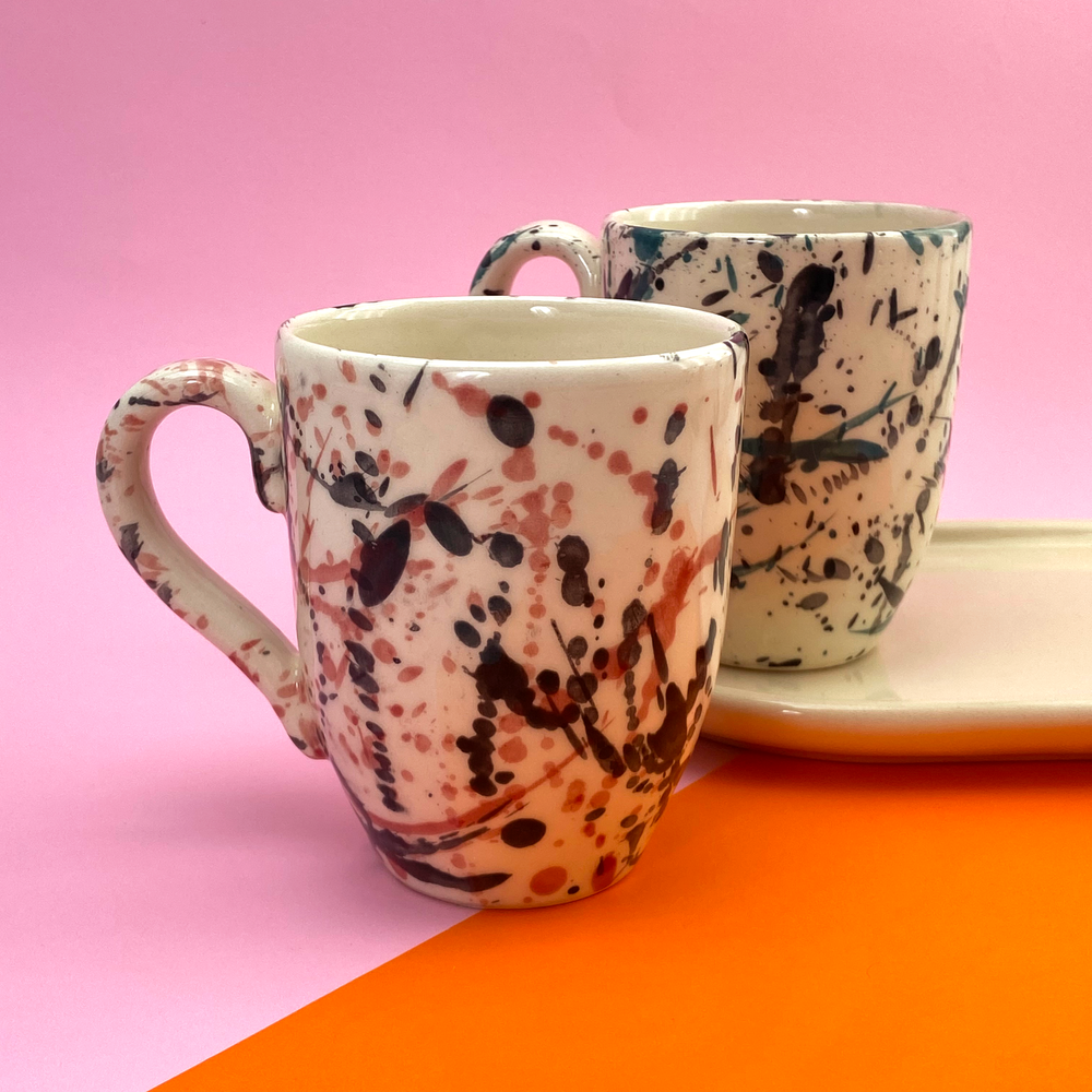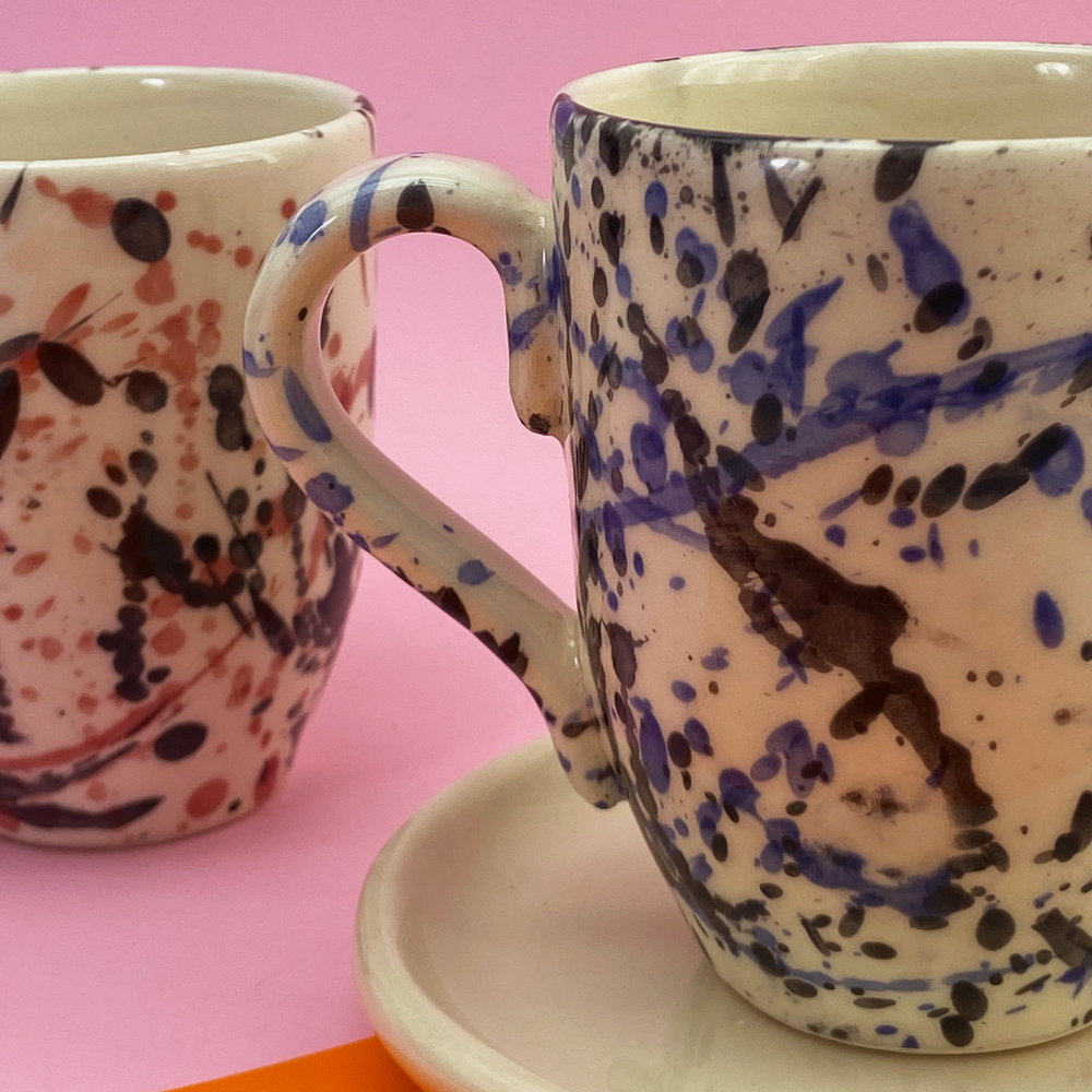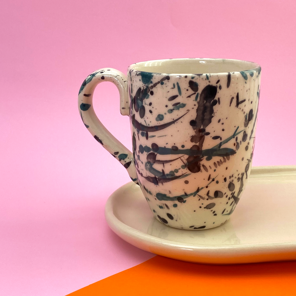 Taza bombé color base beige con diseño de manchas en 2 colores