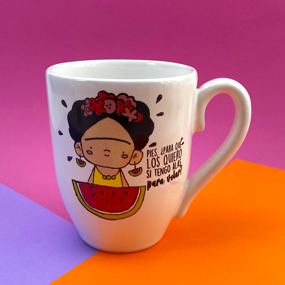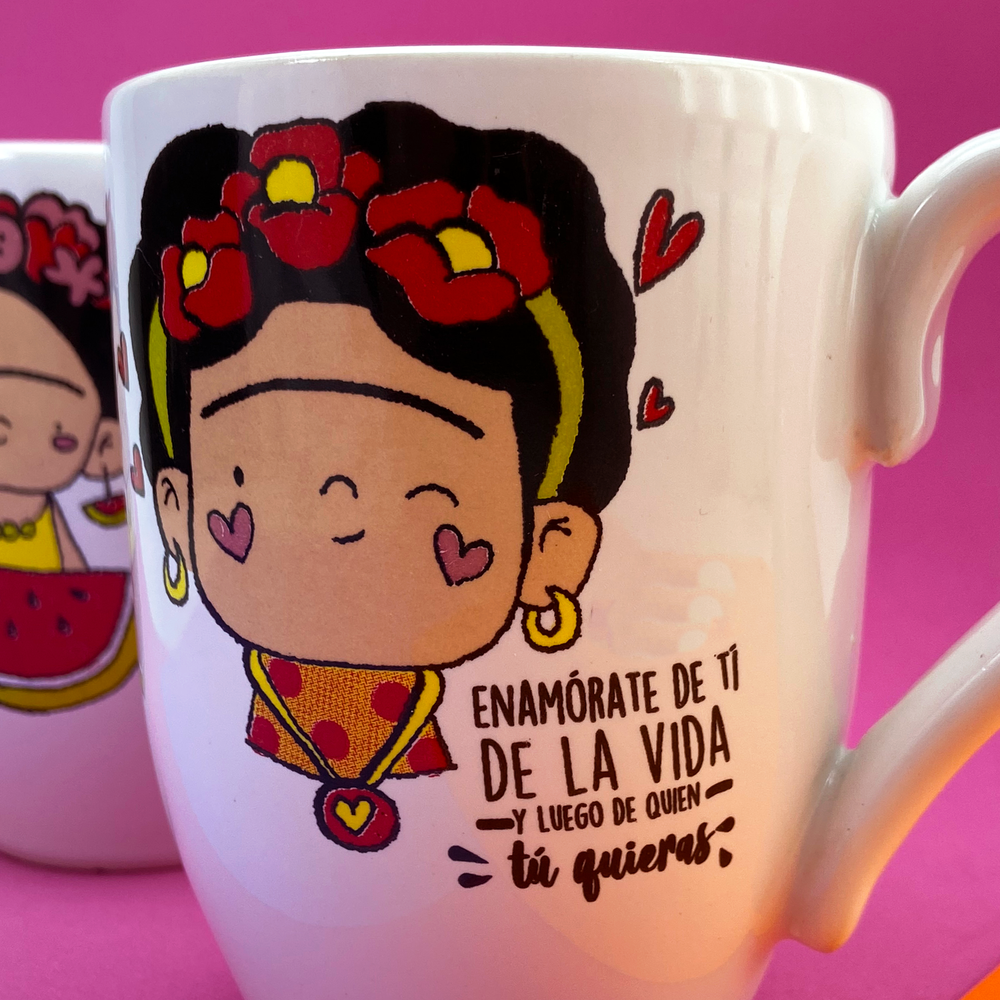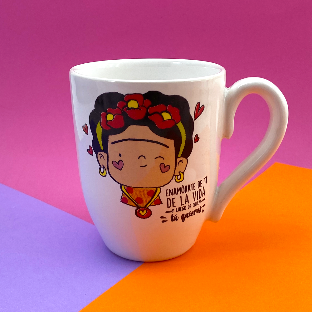 Taza bombé blanca con diseño de frida y frase