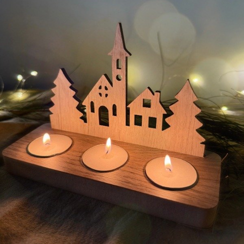 Medidas de base: 18cm x 7cm Material: Melamina de 18mm y 5.5mm Color: Gaudí y Helzinki INCLUYE VELAS