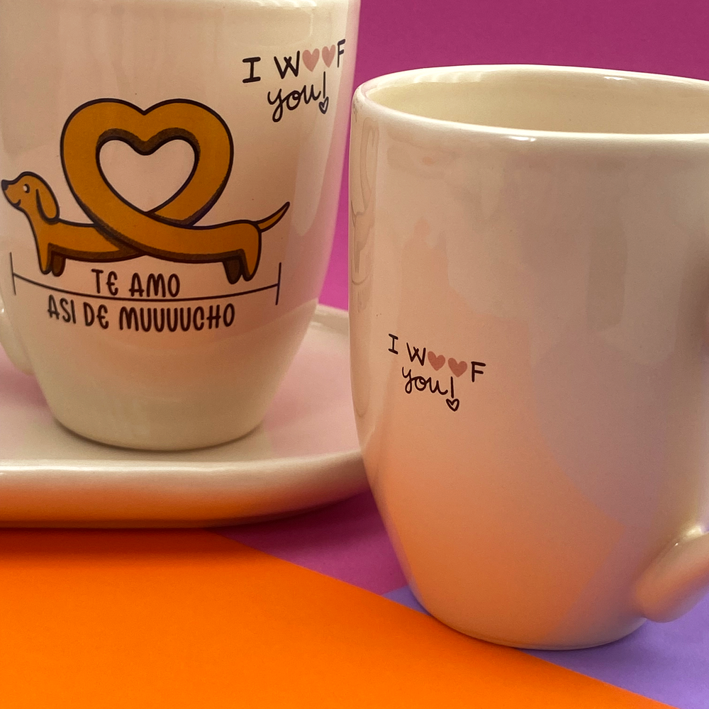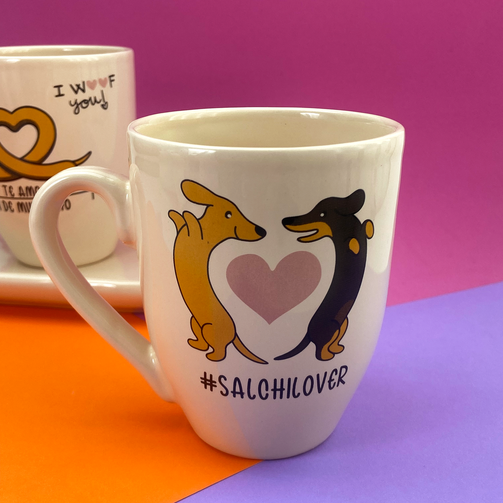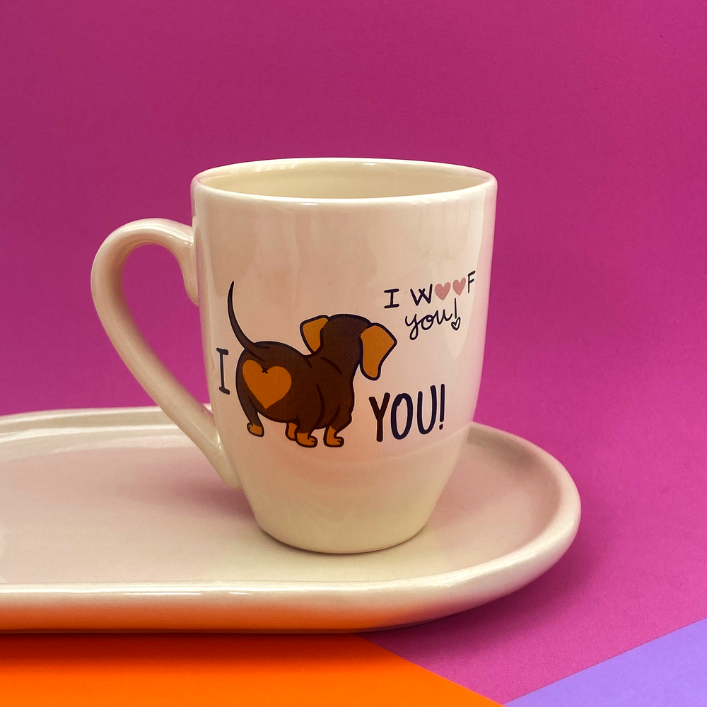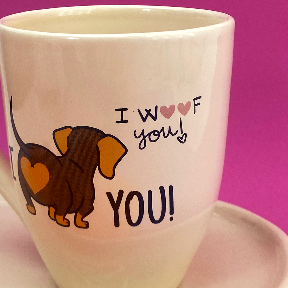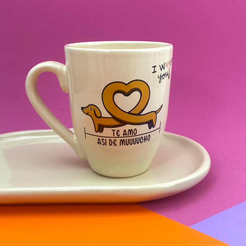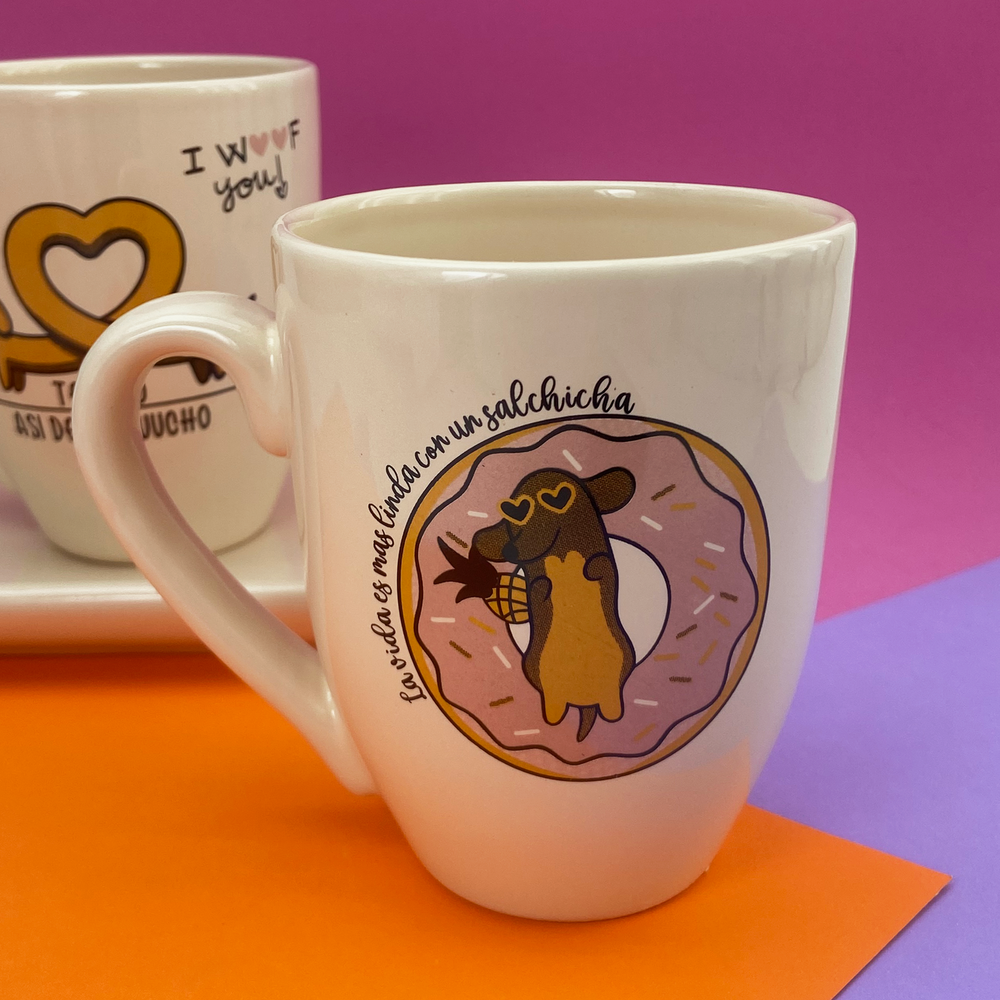 Taza de cerámica cónica con diseño estampado de perro salchicha