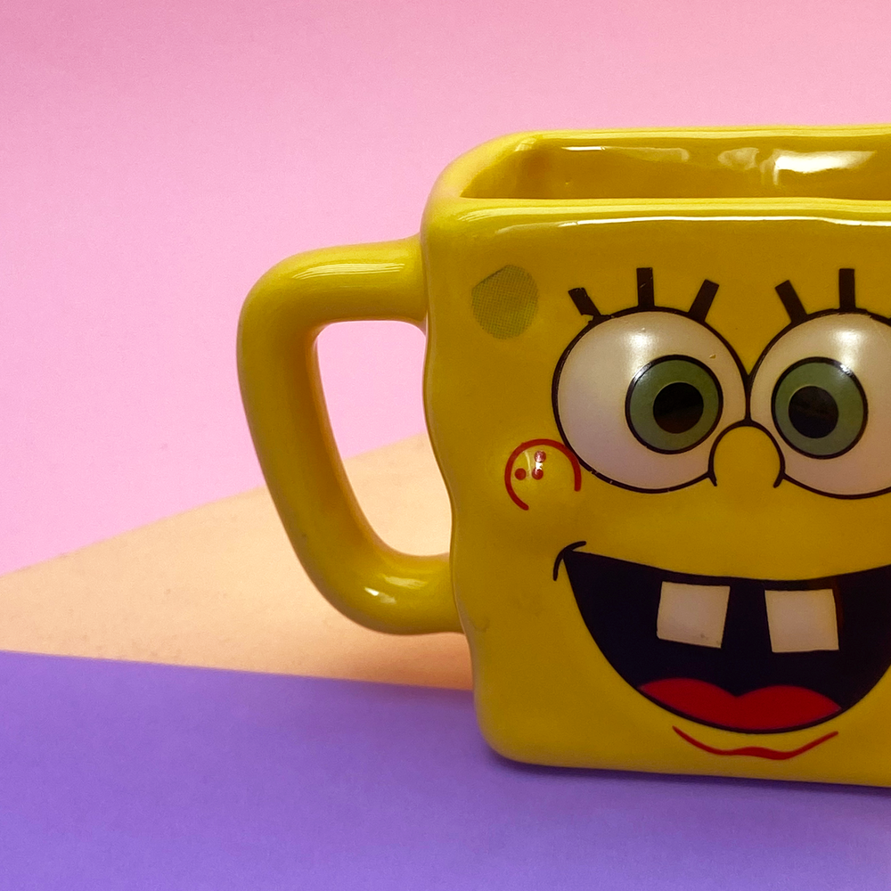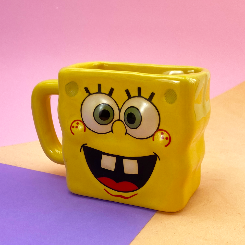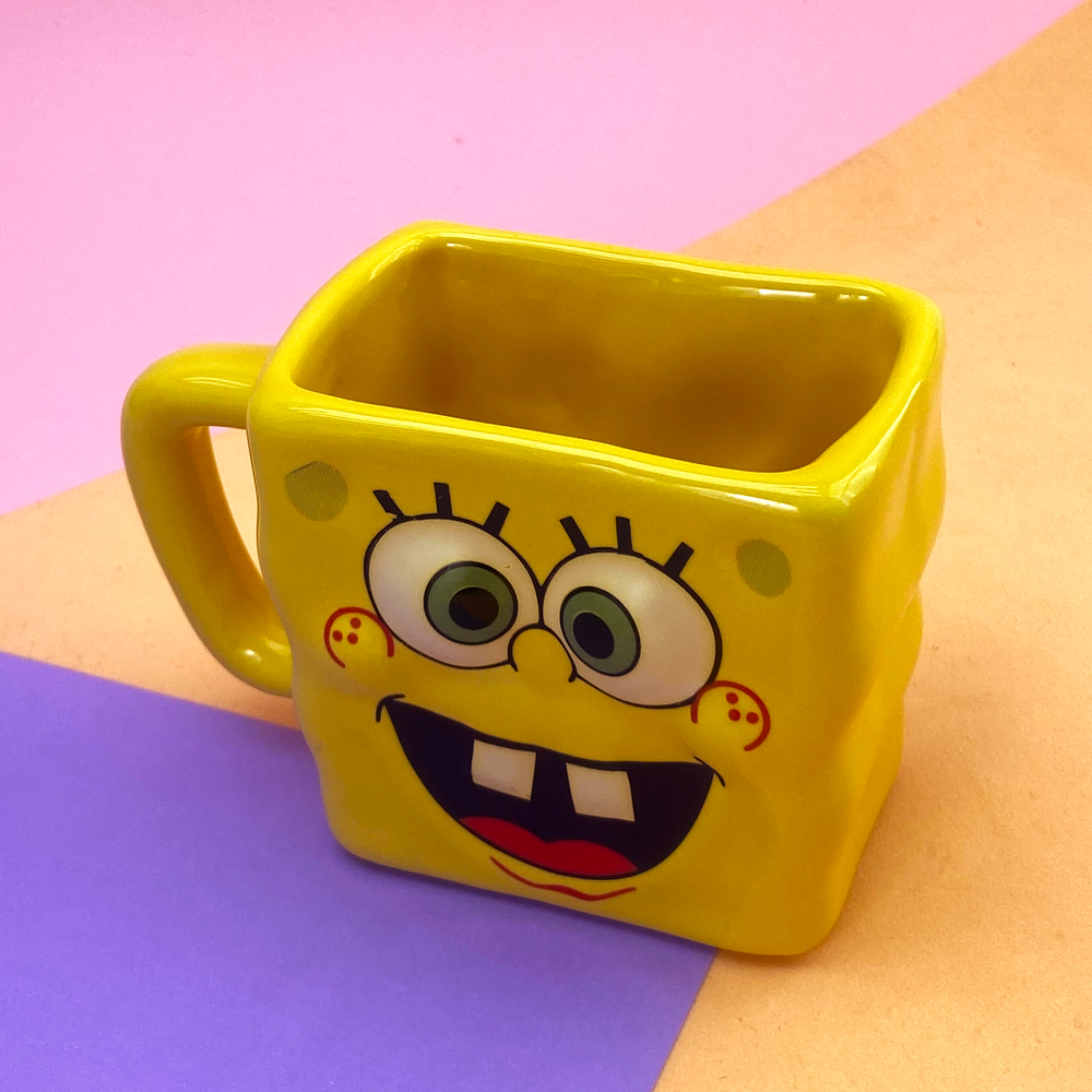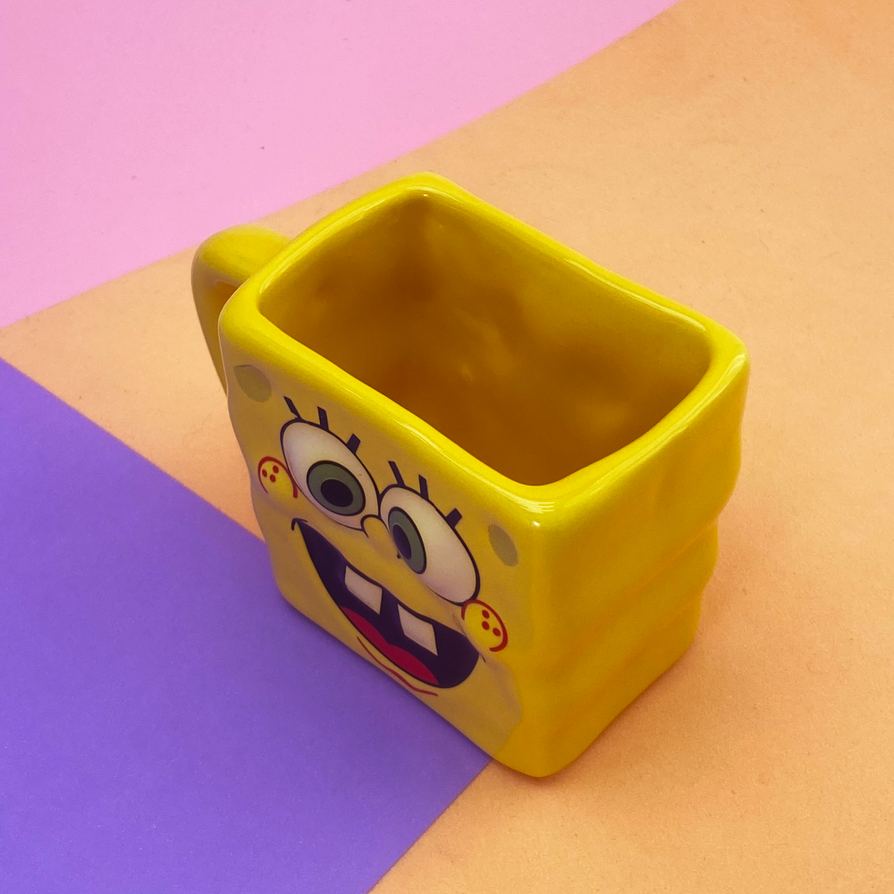 Taza rectangular con diseño de bob esponja