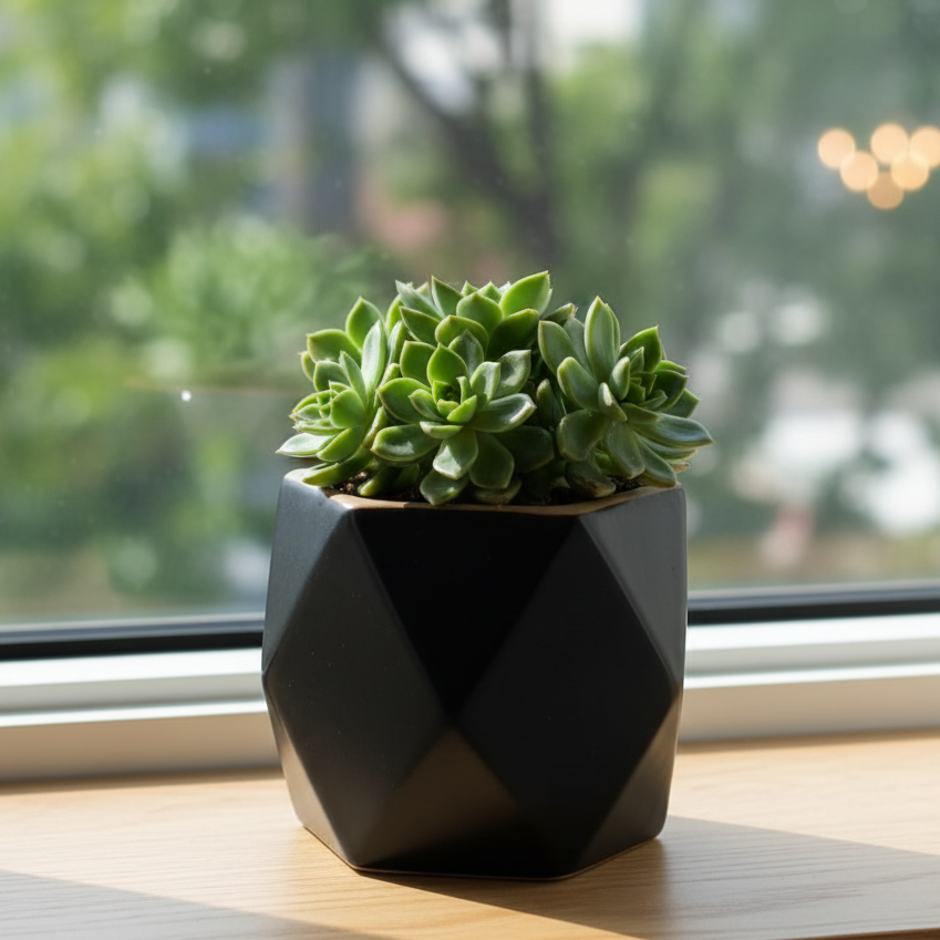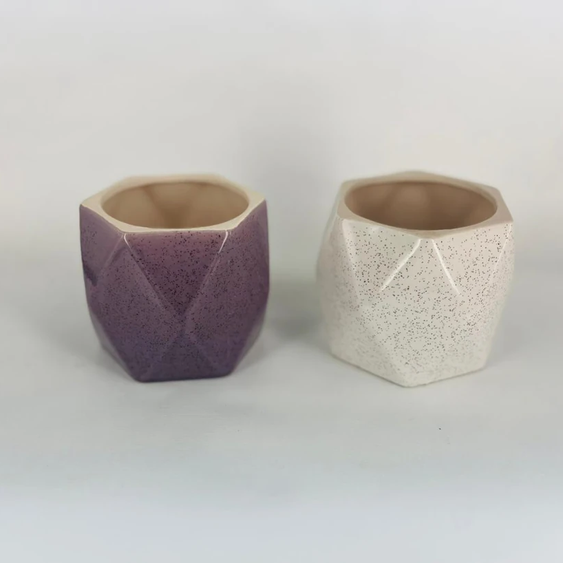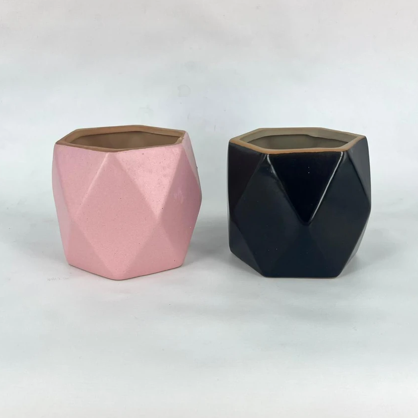 MACETA DE CERAMICA DISEÑO GEOMETRICO. SURTIDOS DE COLORES (MATE Y BRILLOSO)