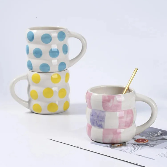 TAZA DE CERAMICA CON ASA Y COLORES SURTIDOS.