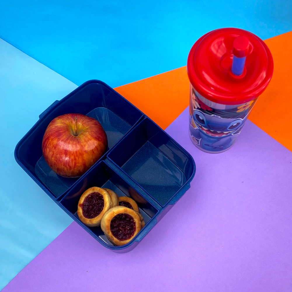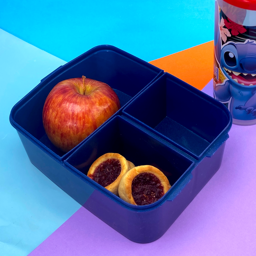 Tapa con cierre a presión, fácil de abrir y manipular. Pote con 3 divisiones separadas por si, 1 grande y 2 chicas. Una gran opción para enviar un desayuno, almuerzo o snack completo y los alimentos no se mezclan entre sí