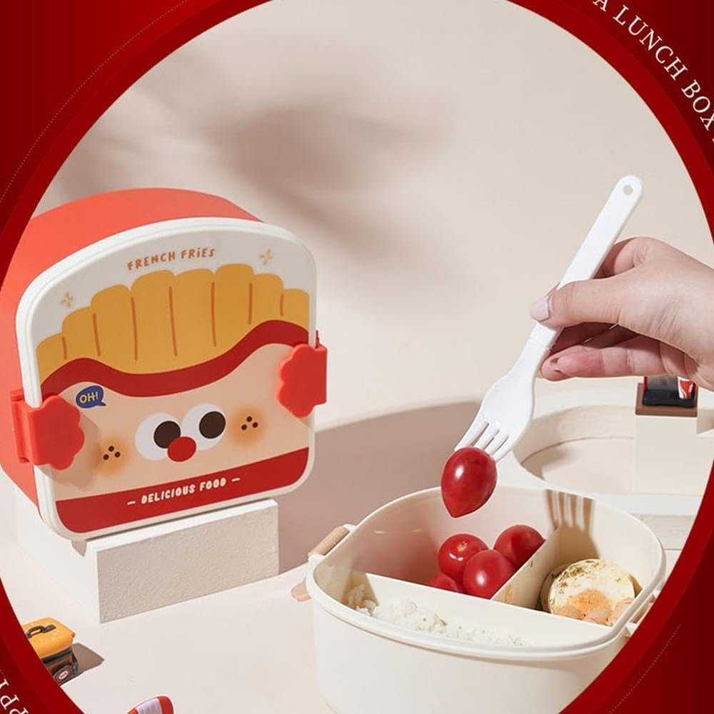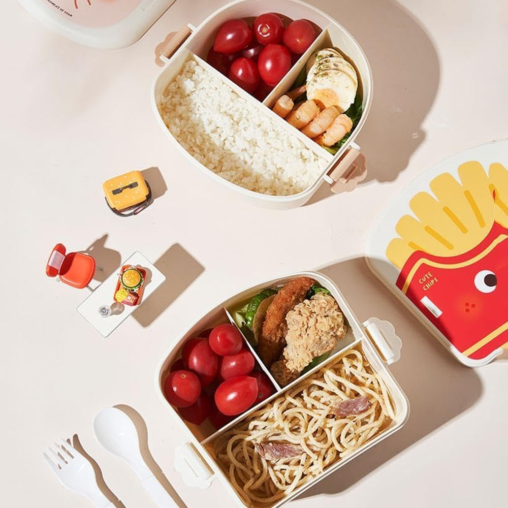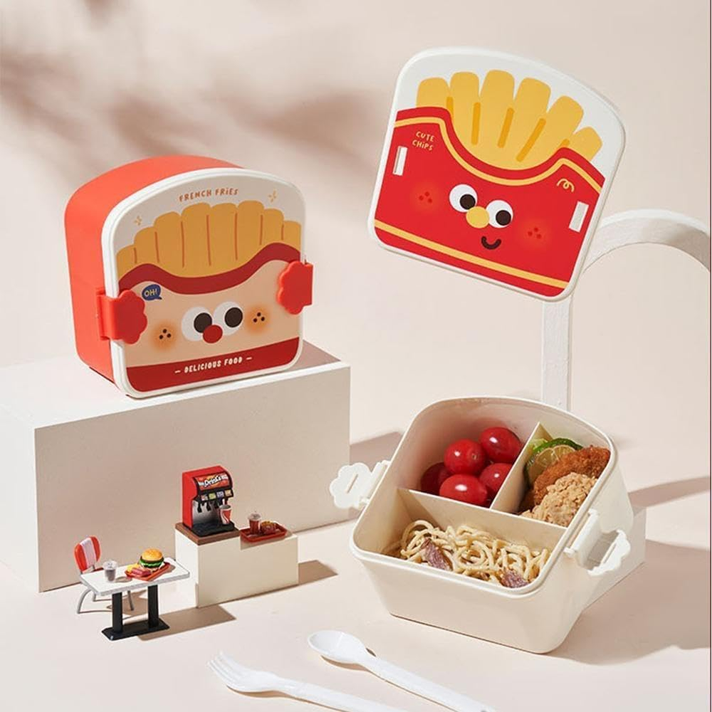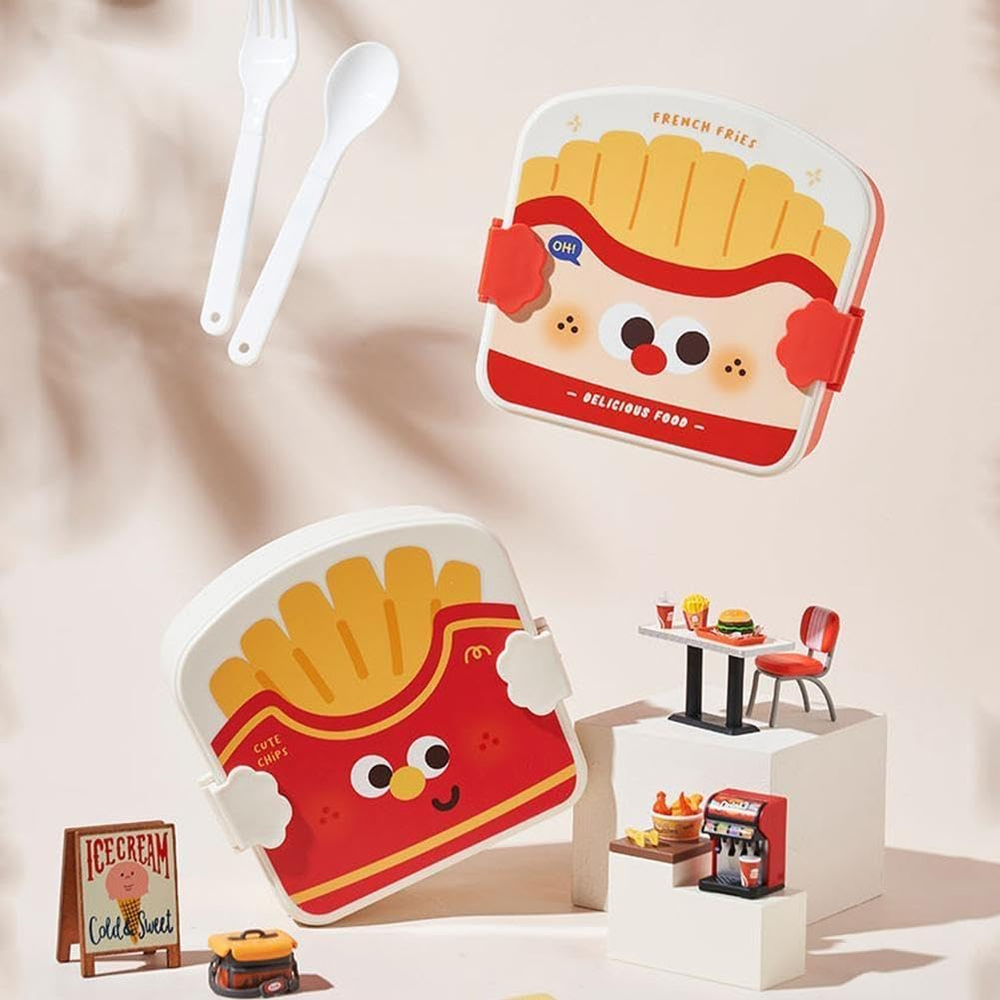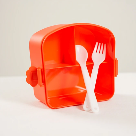 Con 2 trabas laterales y y divisiones internas Incluye set de cuchara y tenedor de plástico