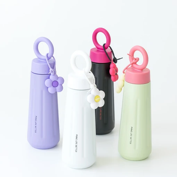 Botella térmica con accesorio de flor en la tapa