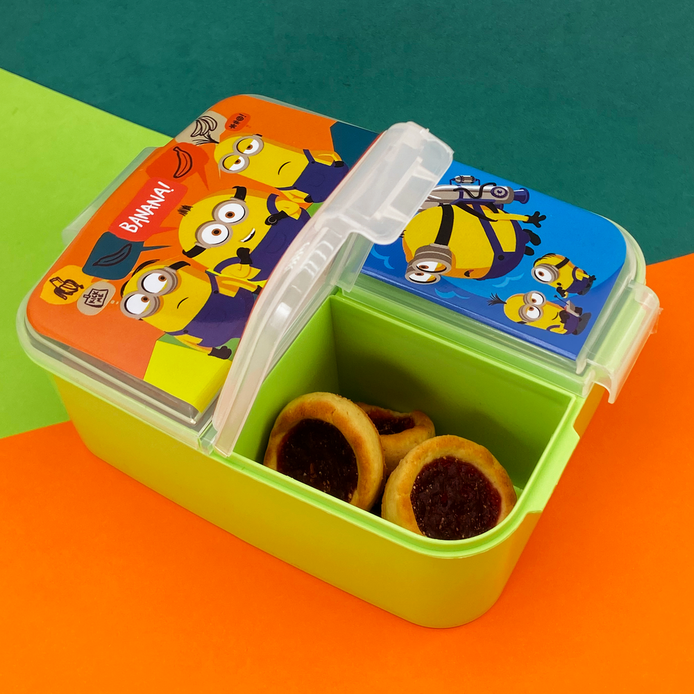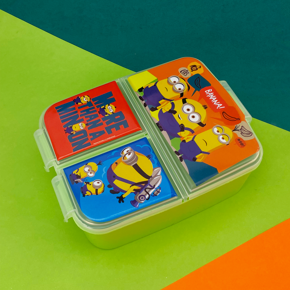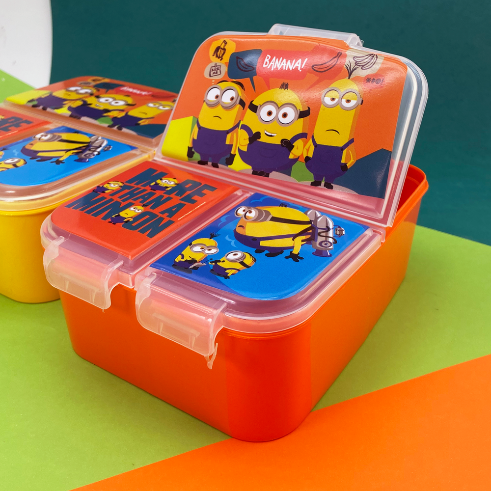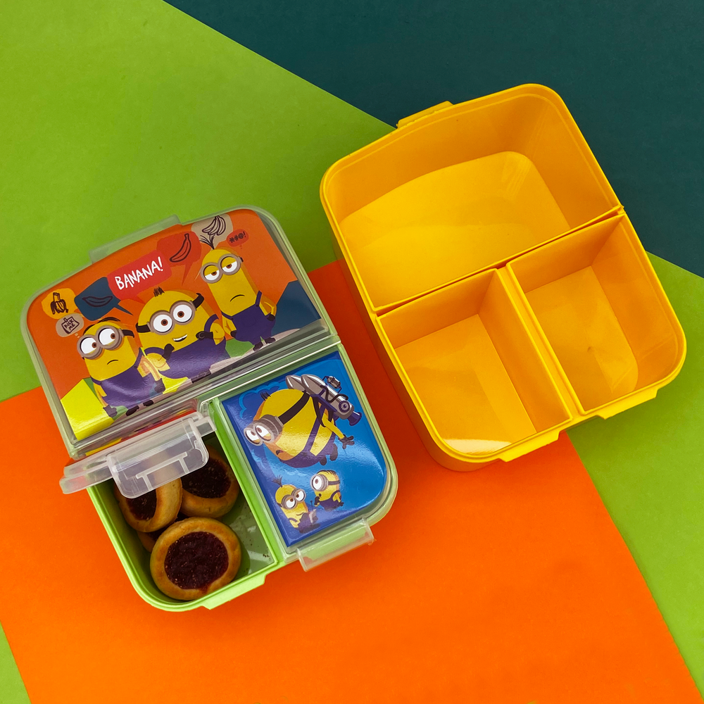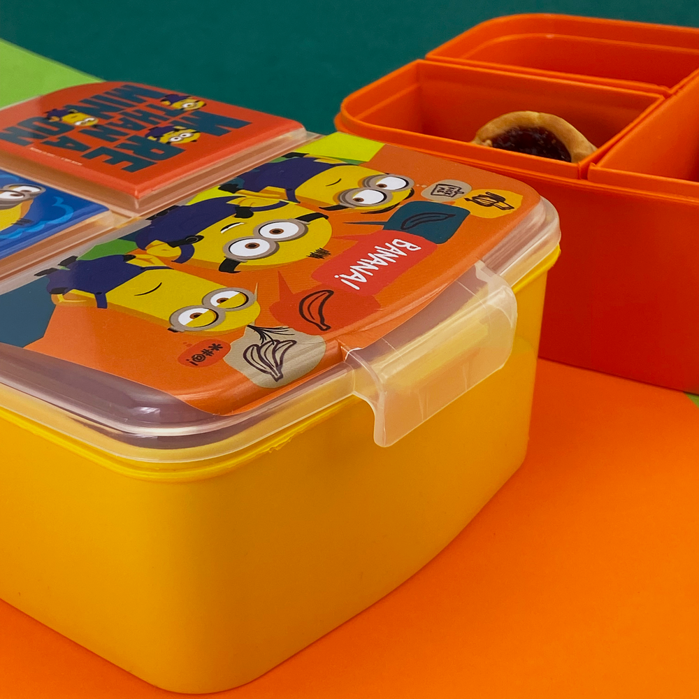 Tapa con cierre a presión, fácil de abrir y manipular. Pote con 3 divisiones separadas por si, 1 grande y 2 chicas. Una gran opción para enviar un desayuno, almuerzo o snack completo y los alimentos no se mezclan entre sí