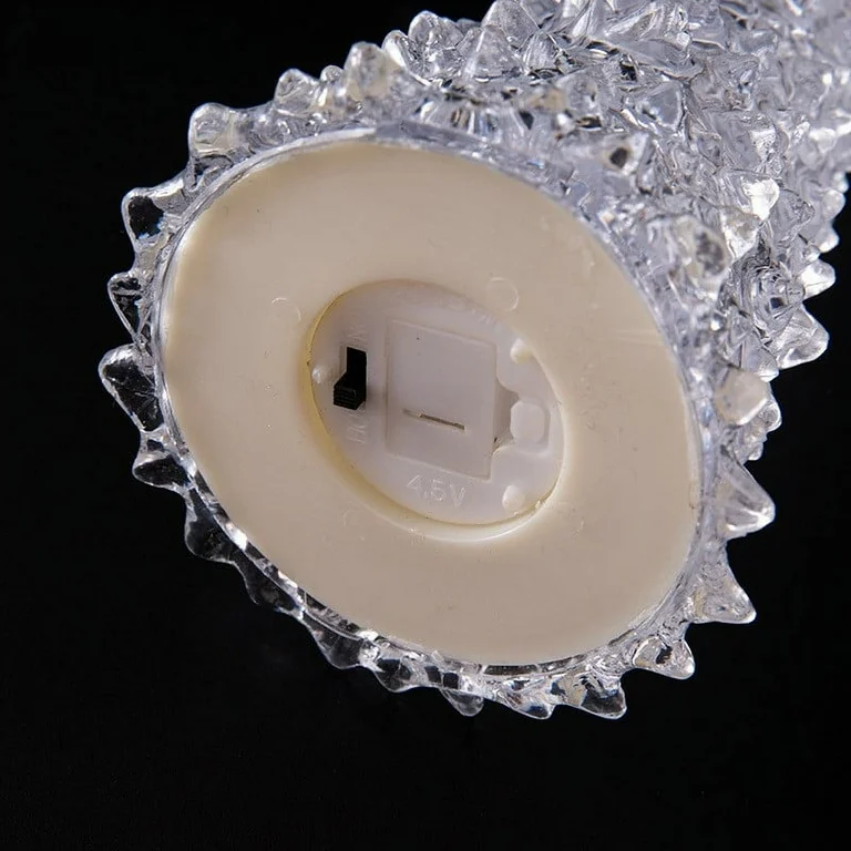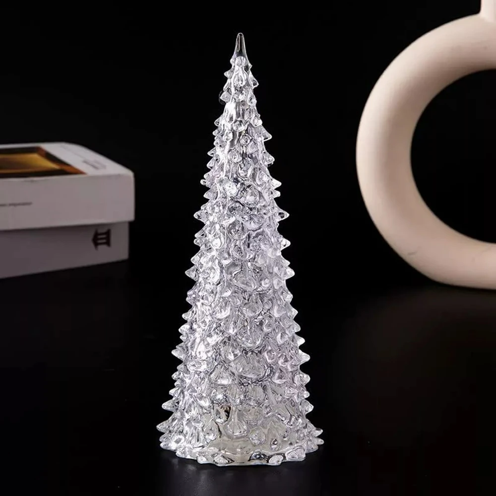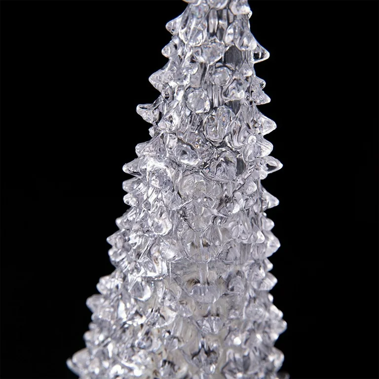 Arbolito plástico transparente con luces multicolores.