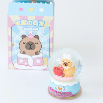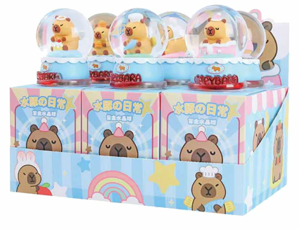CAJITAS SORPRESAS CAPIBARA. TRAE UNA BURBUJA DE VIDRIO CON LUZ Y UNA CARTA DEL MODELO. HAY 6 MODELOS DISTINTOS.