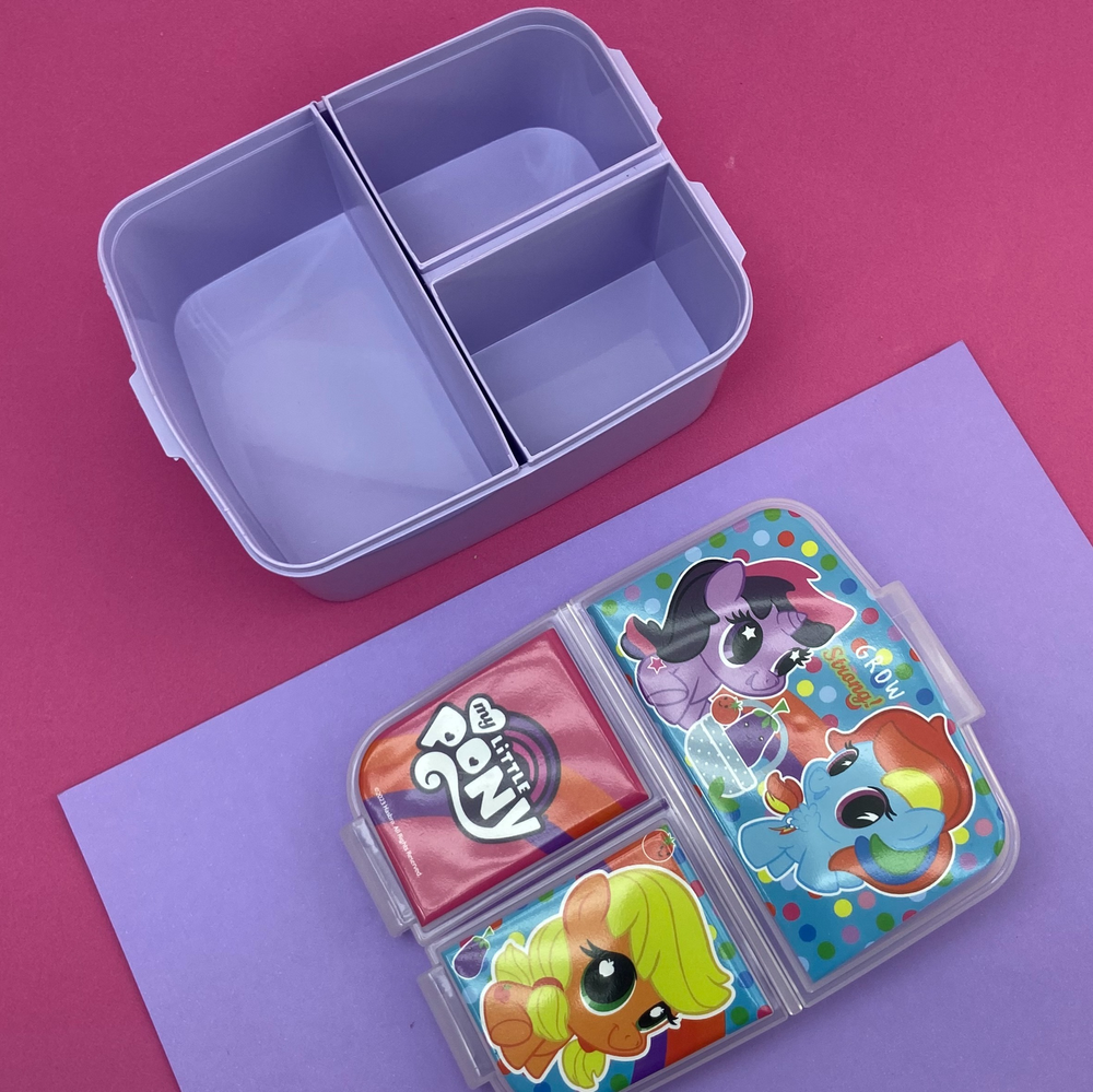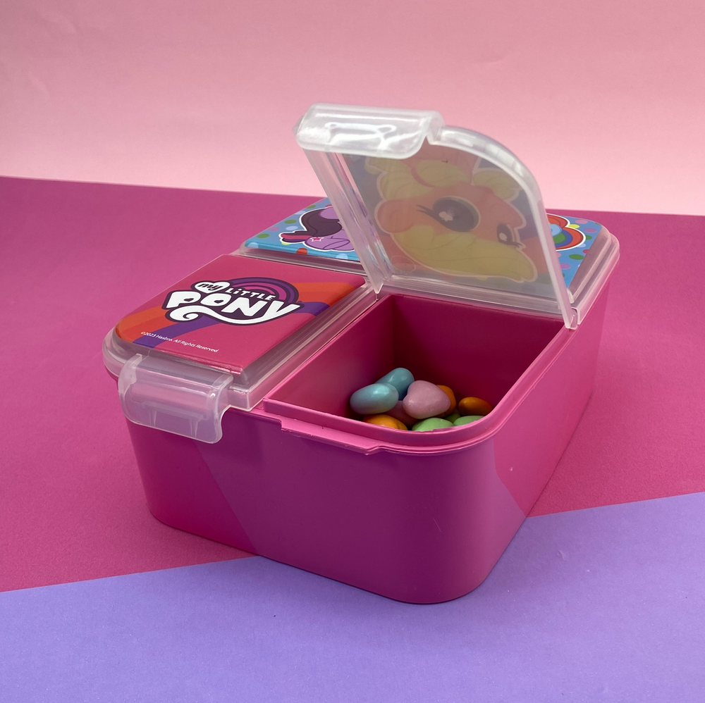 Medidas aproximadas: 14 x 19 x 7 cm Medidas divisiones: 13 x 8 cm / 8x6 cm. / 8x6 cm. Material: Plástico resistente, 100% libre de BPA