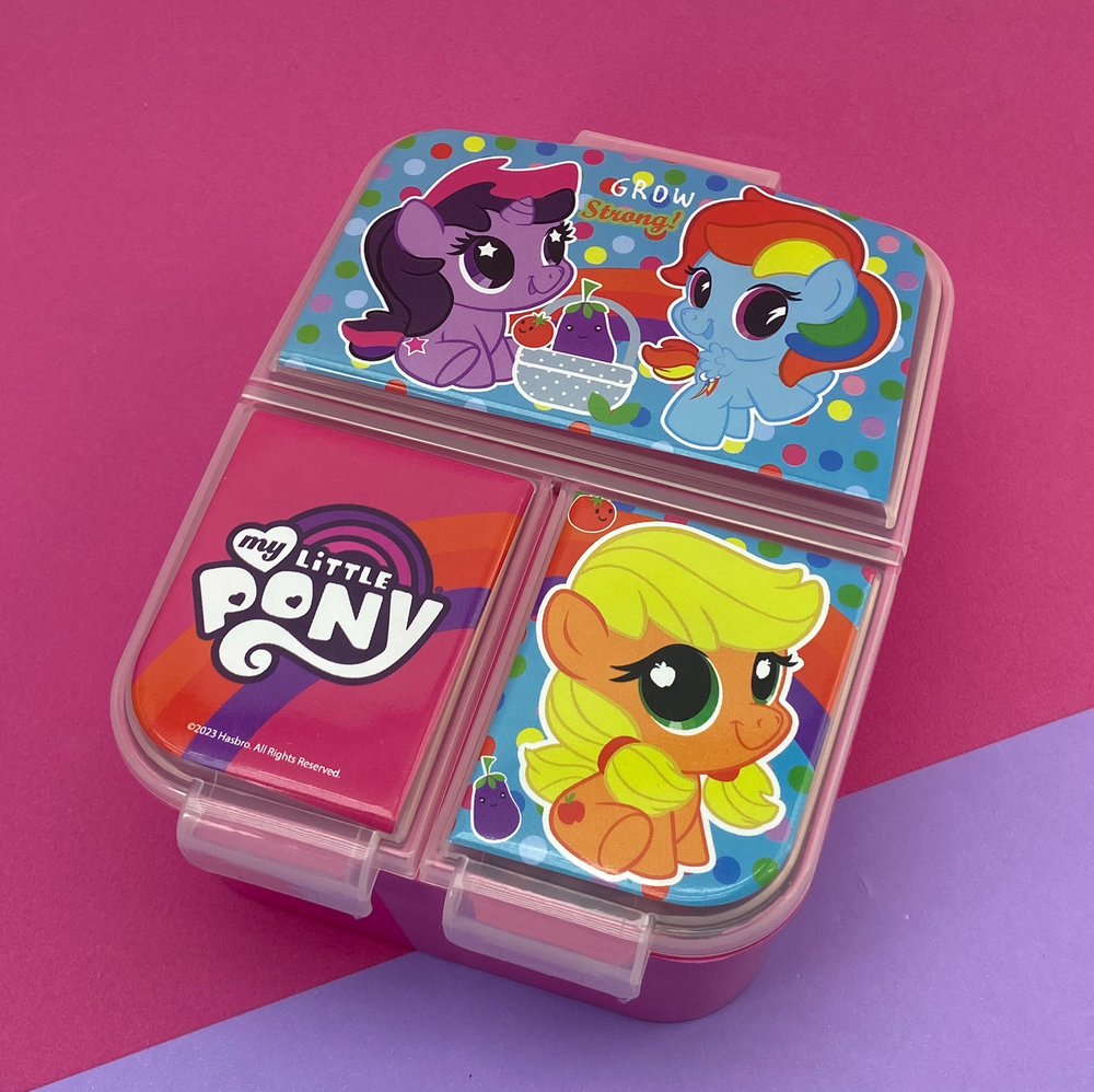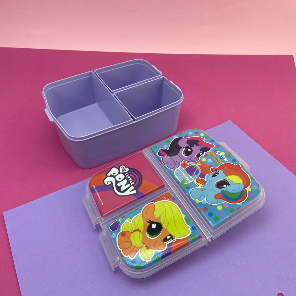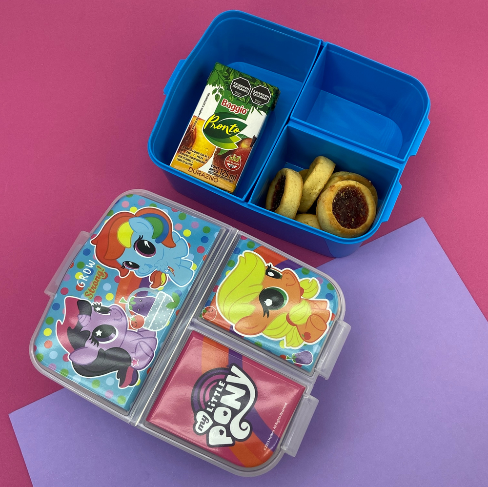 Tapa con cierre a presión, fácil de abrir y manipular. Pote con 3 divisiones separadas por si, 1 grande y 2 chicas. Una gran opción para enviar un desayuno, almuerzo o snack completo y los alimentos no se mezclan entre sí