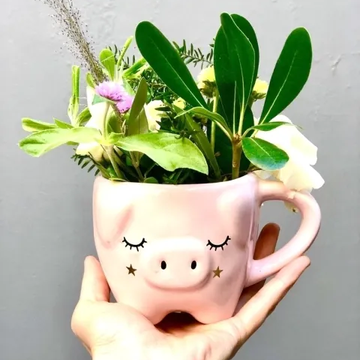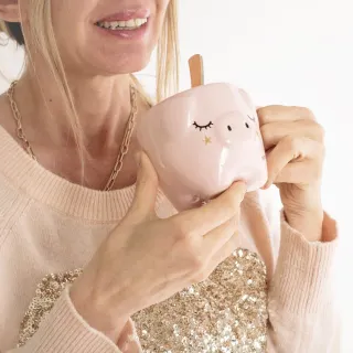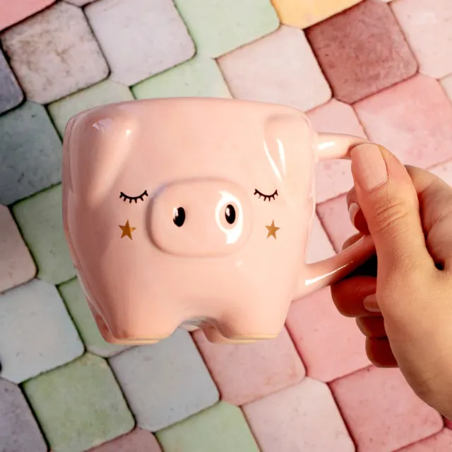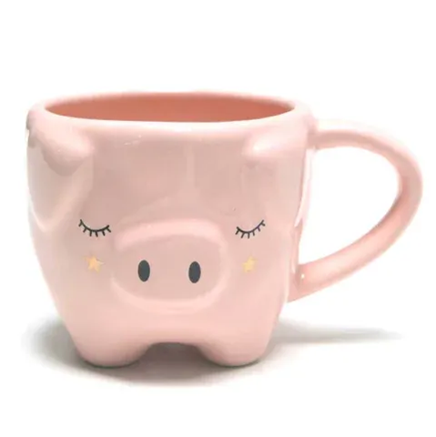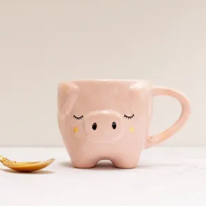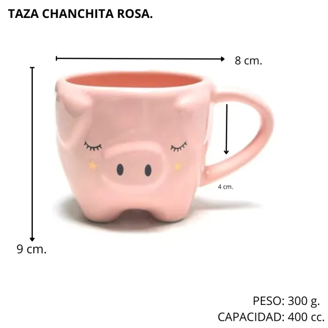Taza de cerámica con diseño de chanchita en color rosa
