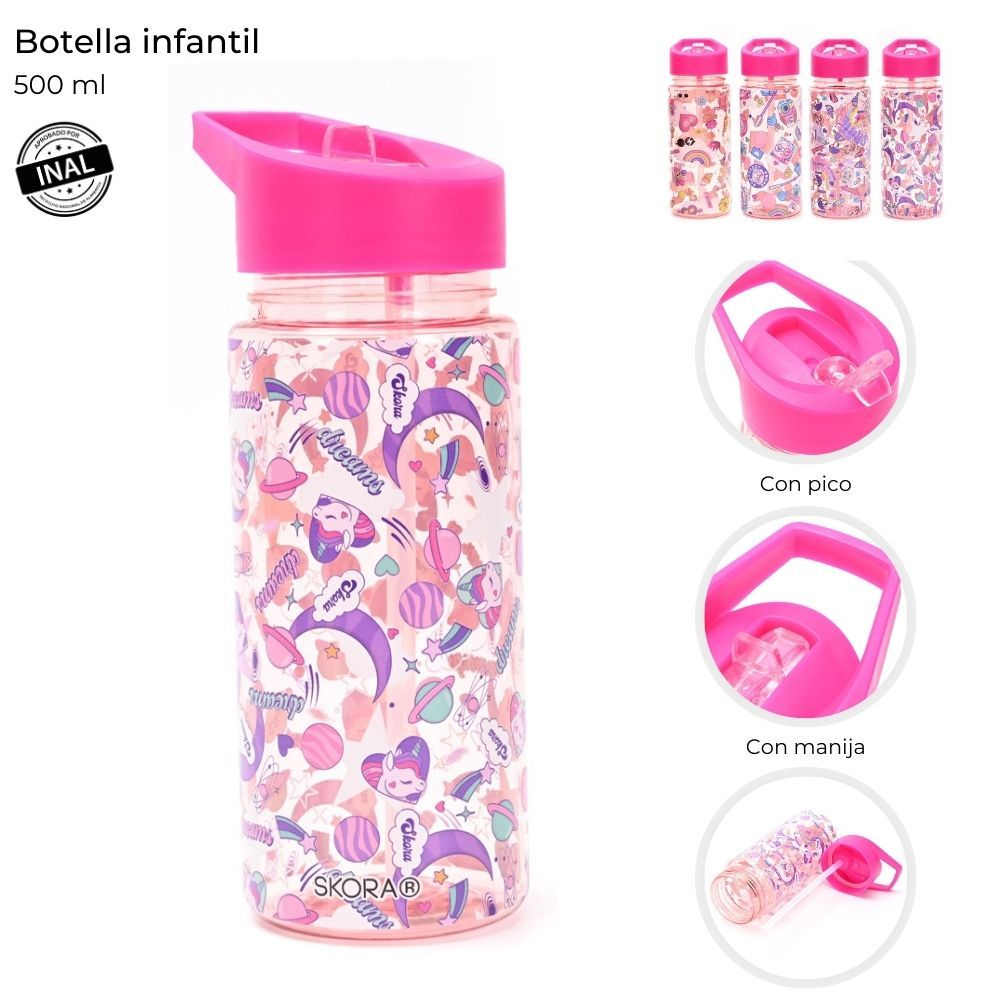 BOTELLA INFANTIL CON PICO 500ML ROSA