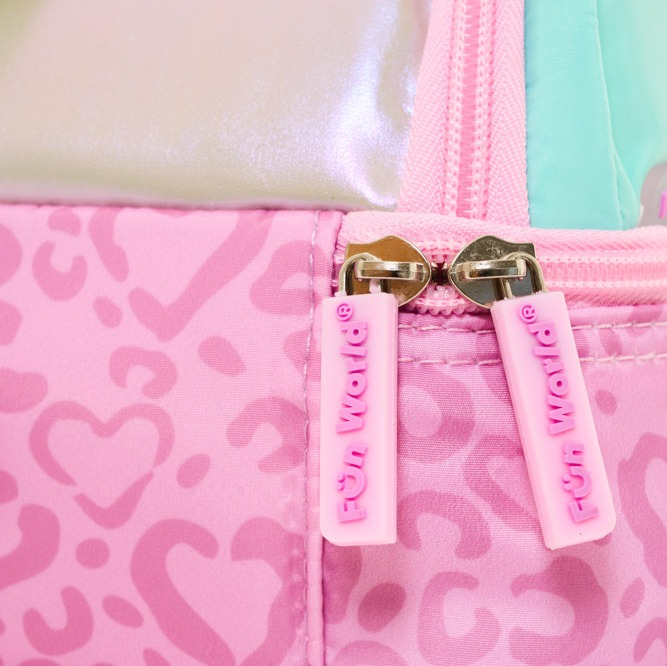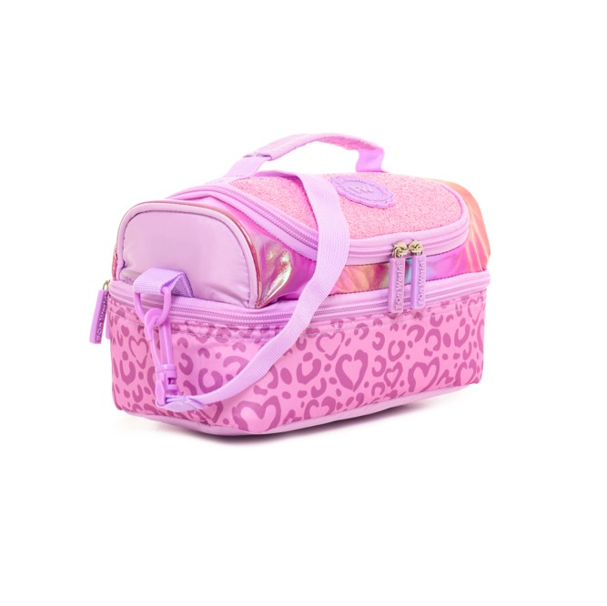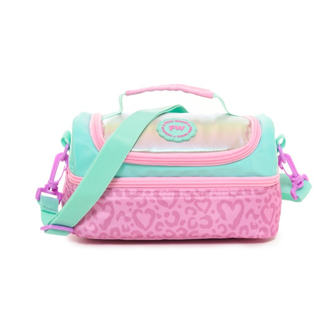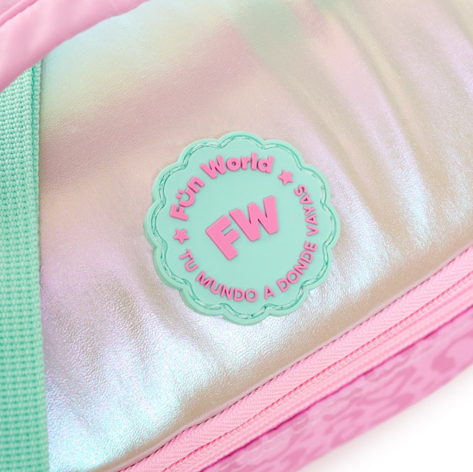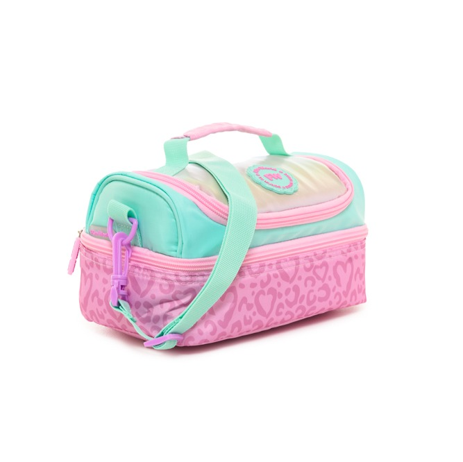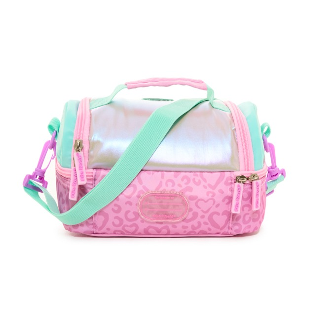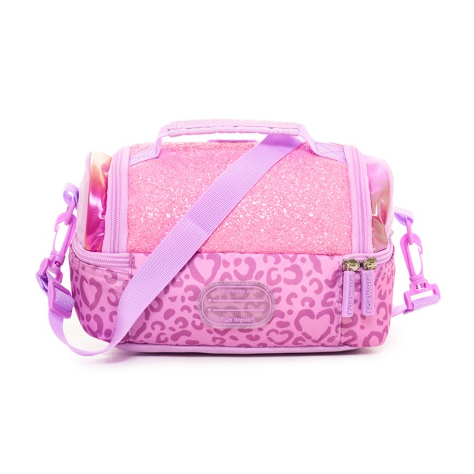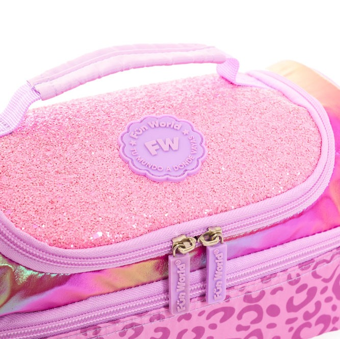Lunchera chic Confeccionada en tela glitter y holográfica, combina brillo y estilo en un diseño funcional y moderno. Dimensiones: 24x14,5x13,5 cm. Compartimento superior con apertura frontal. Compartimento secundario con apertura 180°. Correa corta de mano. Correa de hombro ajustable y desmontable. Interior impermeable y aislante.