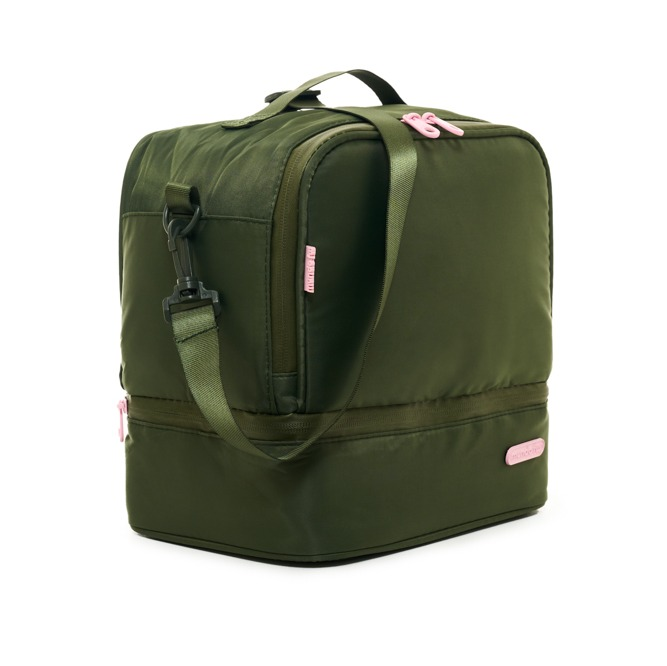 Lunchera Soho Diseño moderno y funcional, ideal para llevar alimentos de forma práctica y segura. Cuenta con un compartimento principal con tiracierre doble y apertura frontal, y un segundo compartimento con cierre y apertura de 180°. Incluye manija corta y correa larga desmontable para mayor comodidad. Su interior es impermeable y aislante. Disponible en tres variantes de color: verde, negro y marrón